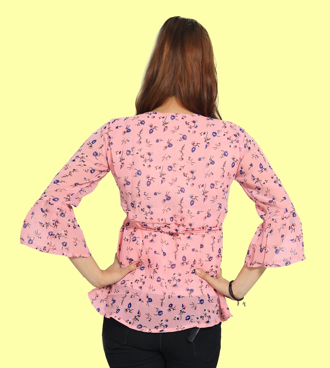 Butterfly pea flowers, scattered upper half floral printed womens top (baby pink top) - Made up of Rayon for your plesant and cozy