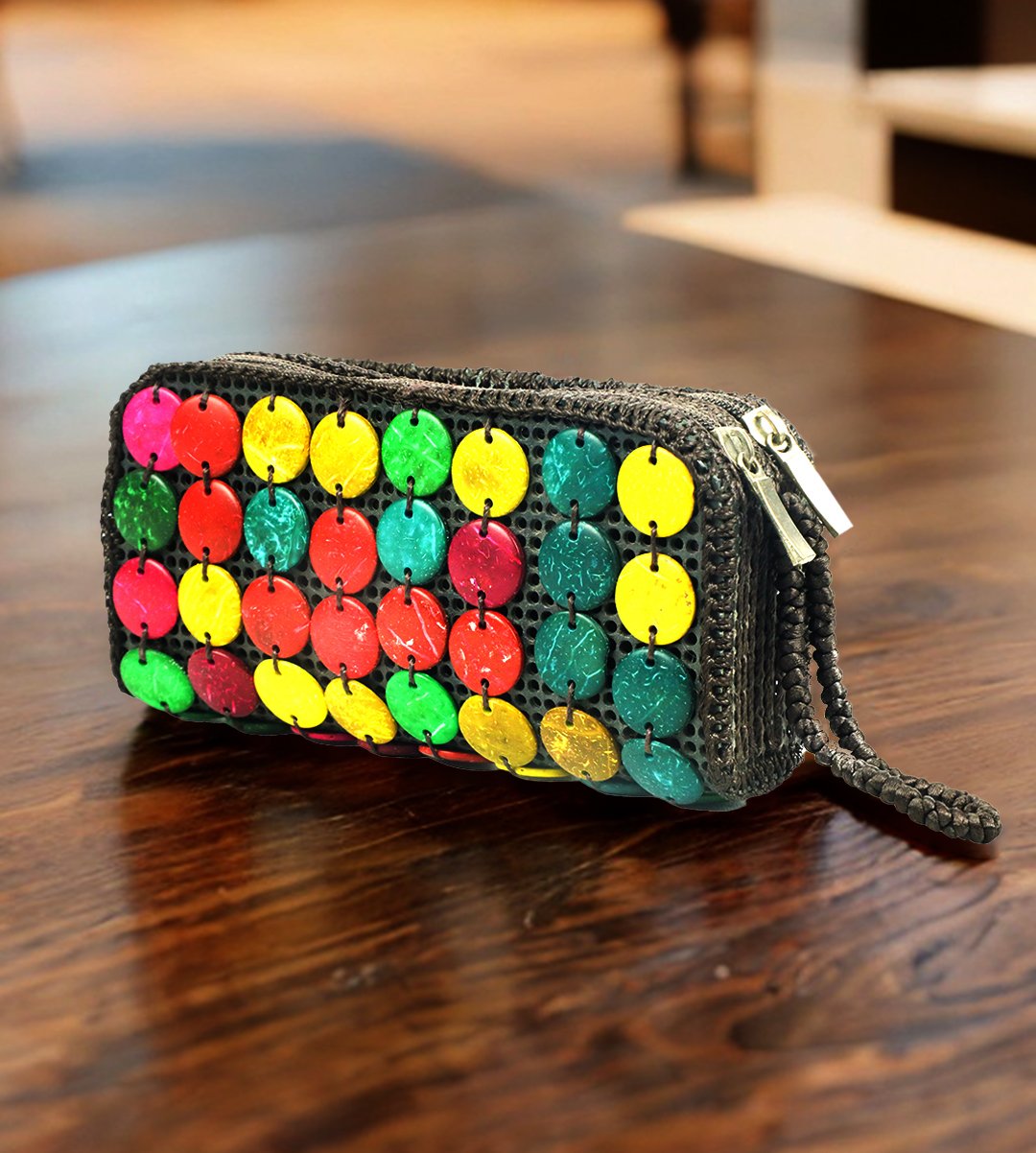 Mini colourful beads buttons rectangular purse/ hand holder for womens