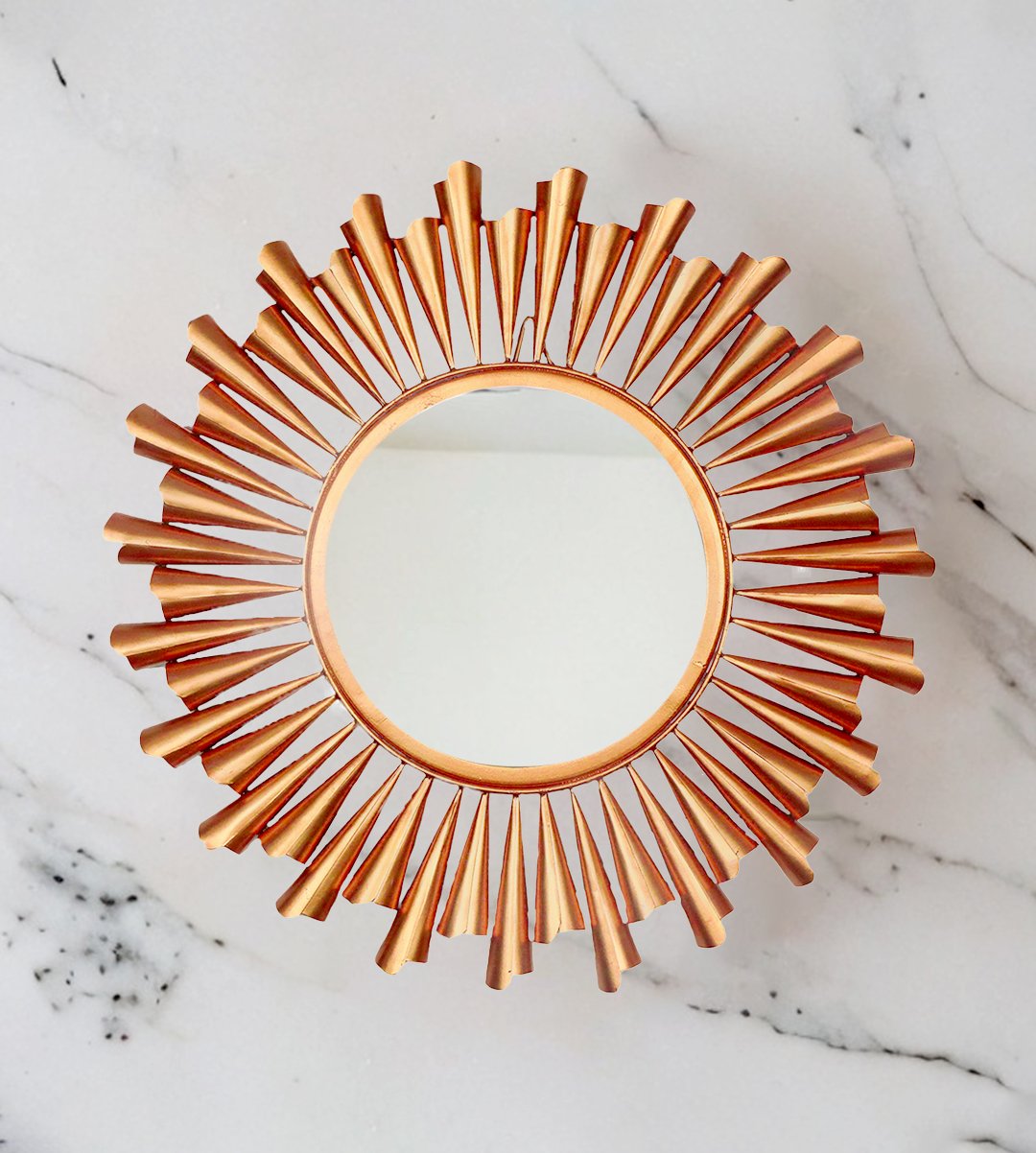 The tiny pyramid type sun burst mirror used to hang on the walls which has amazing metal small cones surrounding it. It is easy to shift from one place to another. It is best to decorate entrance room, bathroom, bedroom, dining room, balcony etc. Four layers of coating to protect the glass. You will fall for this trendy wall mirror. Gifting item to your friends, family or your dear onesThey are little bit heavy weight. Add an element of beauty to your home decor. It can also be an ideal addition to your living room. It could be a memorable gift to your wedding, house warming, anniversary or festive occasions, it can be a memorable return gift.What can be a better gift than a handcrafted antique wall mirror for your loved ones? Gift it to yourself or Friend, Spouse, Mother, Father, Grand Parents. All Occasion Gift.
