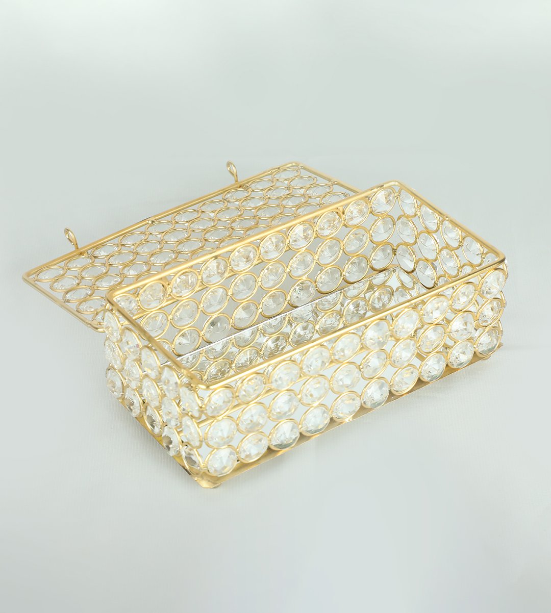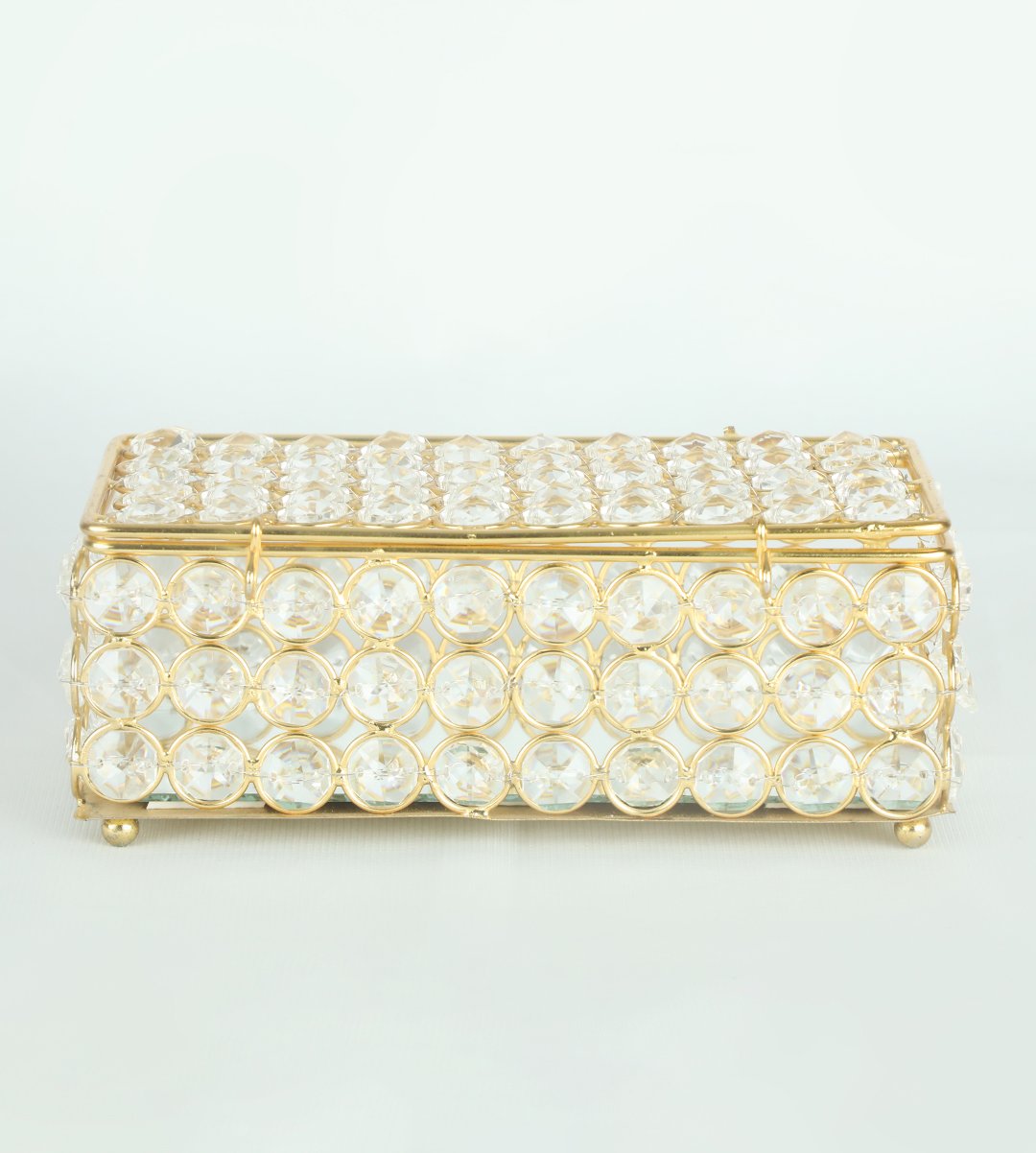Rectangular Golden crystal box showpiece with transparent small beads with 2 hooks for home decoration purpose