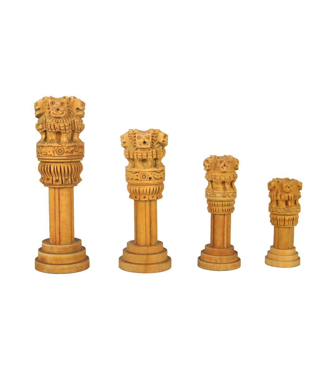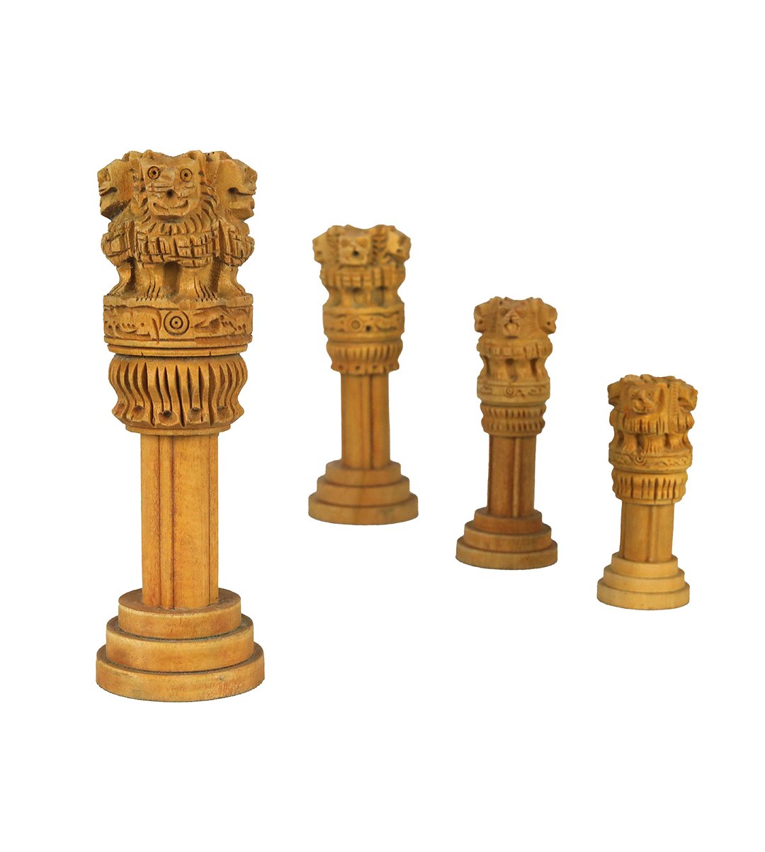 Kadam wooden satyamev jayate national emblem /ashok stambh/ pillar with four lions for home decor(Set of 4)