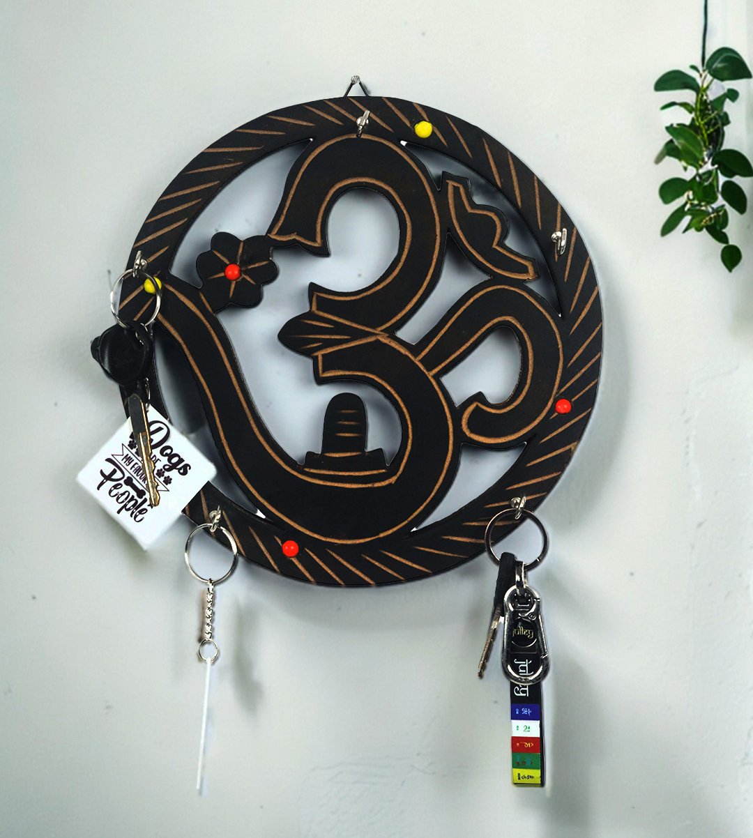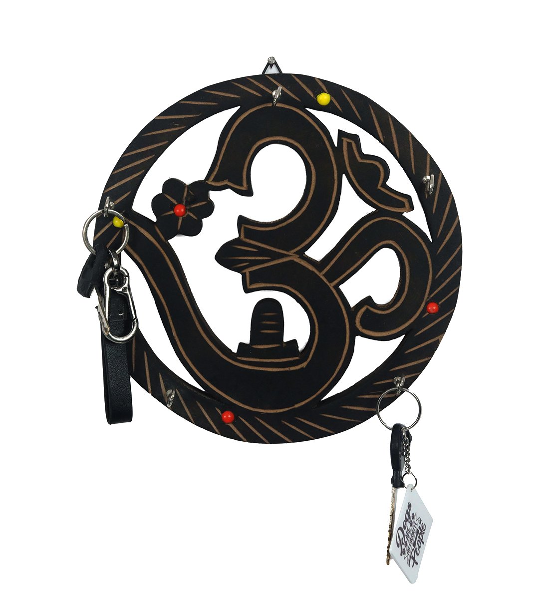 Wooden Om Symbol hanging Keystand (black) for walls for home and office decor