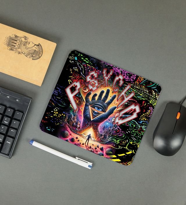 Brighten your desk with this psychedelic-themed mousepad featuring bold, colorful patterns. Made with a smooth fabric surface for precise mouse movement and a non-slip rubber base for stability