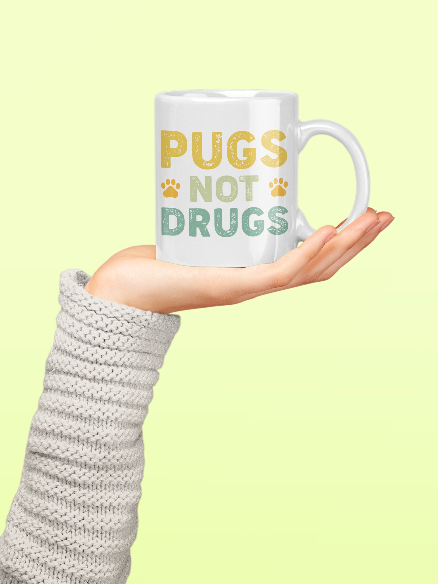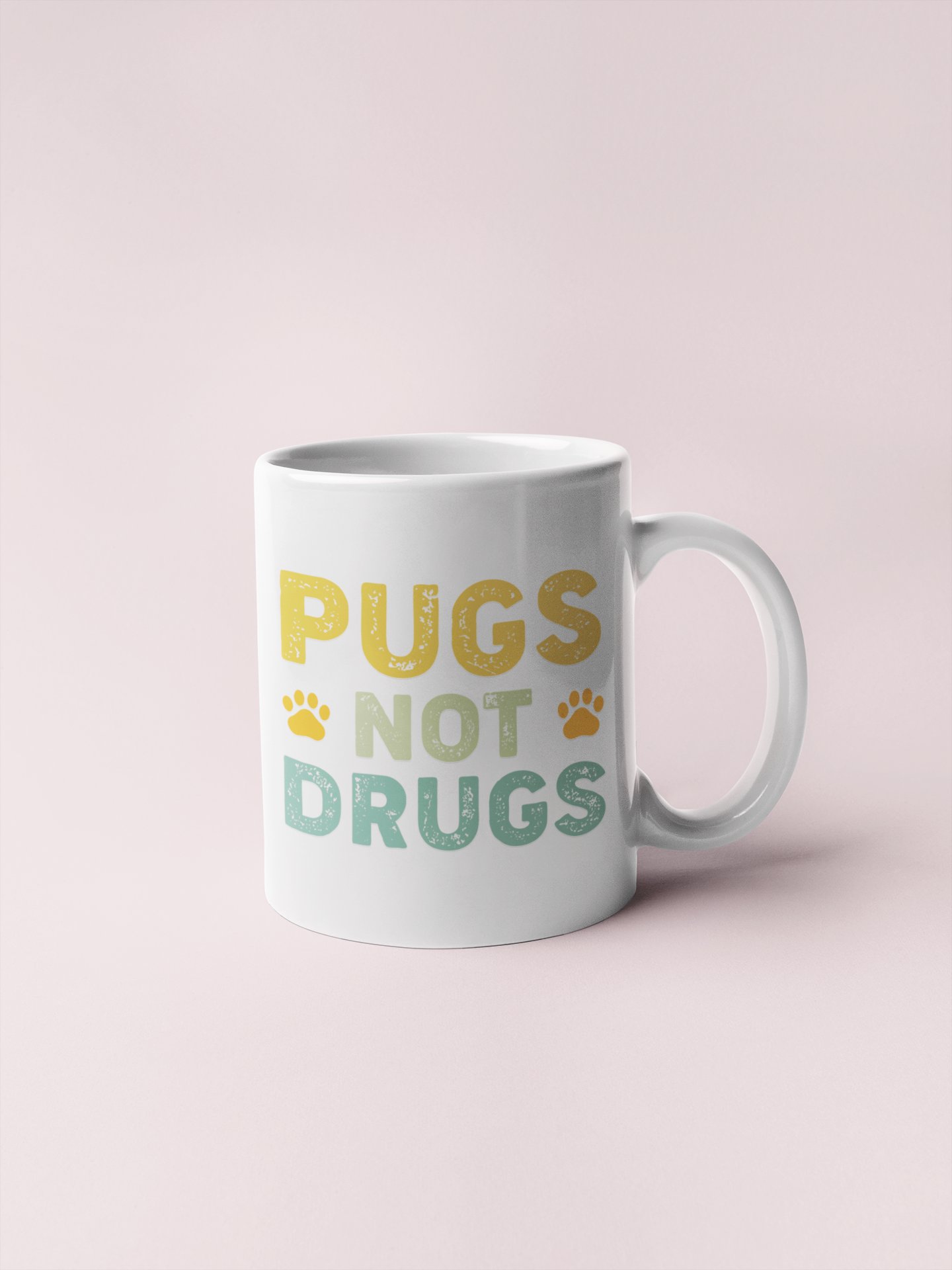 Pugs not drugs- pets themed printed ceramic white coffee and tea mugs/ cups for pets lover people
