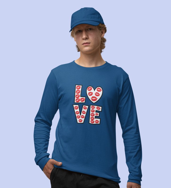 Pure Love: Attractive Printed (blue) Full Sleeve T-Shirt For Singles