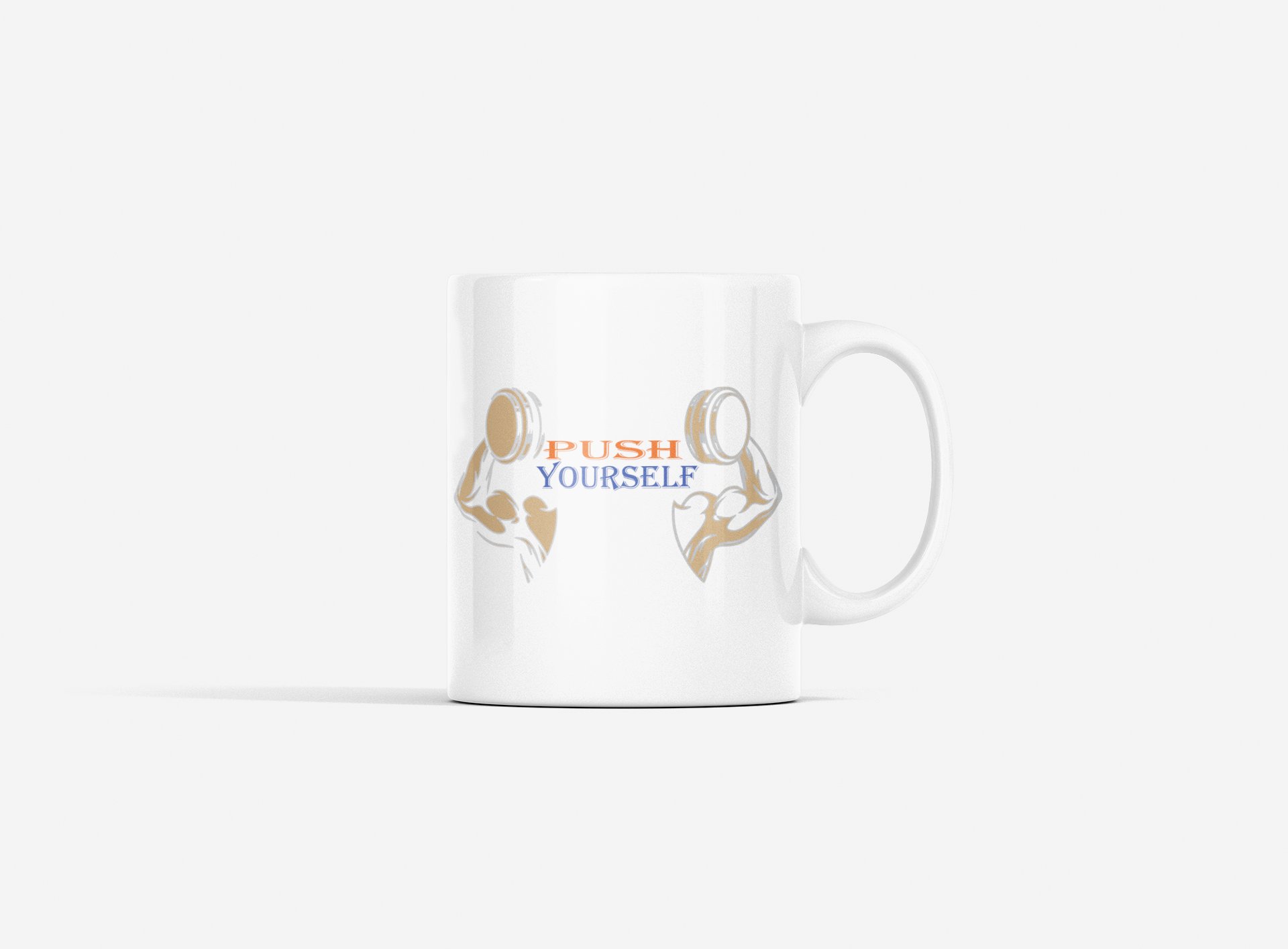Push Yourself - gym themed printed ceramic white coffee and tea mugs/ cups for gym lovers