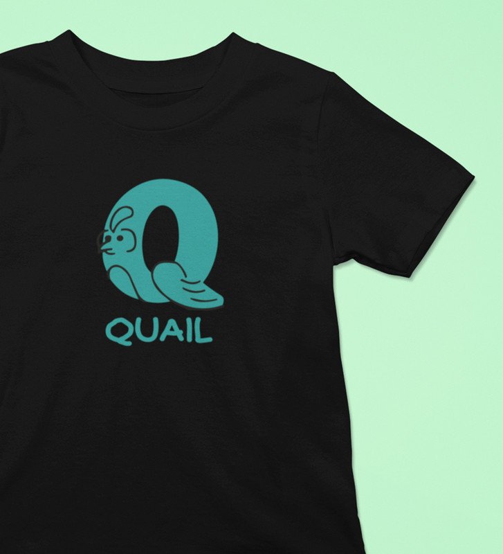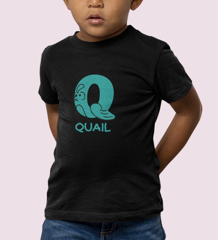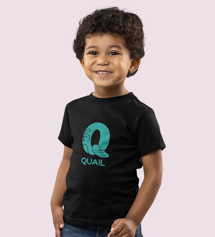 Quacky Quail, Boys Round Neck Blended Cotton Tshirt (Black)