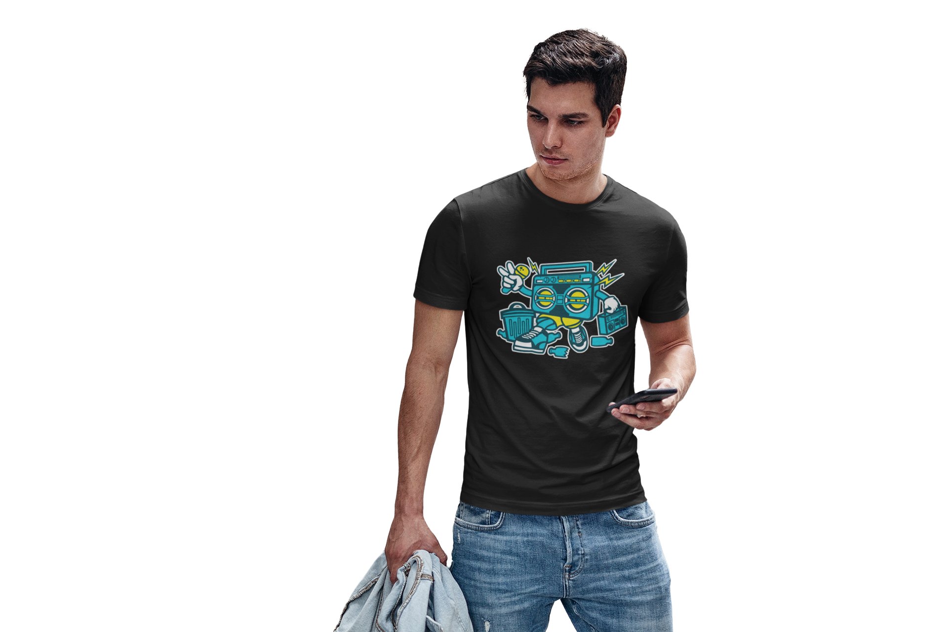 Radio(BG Blue) Illustration art -round crew neck cotton tshirts for men