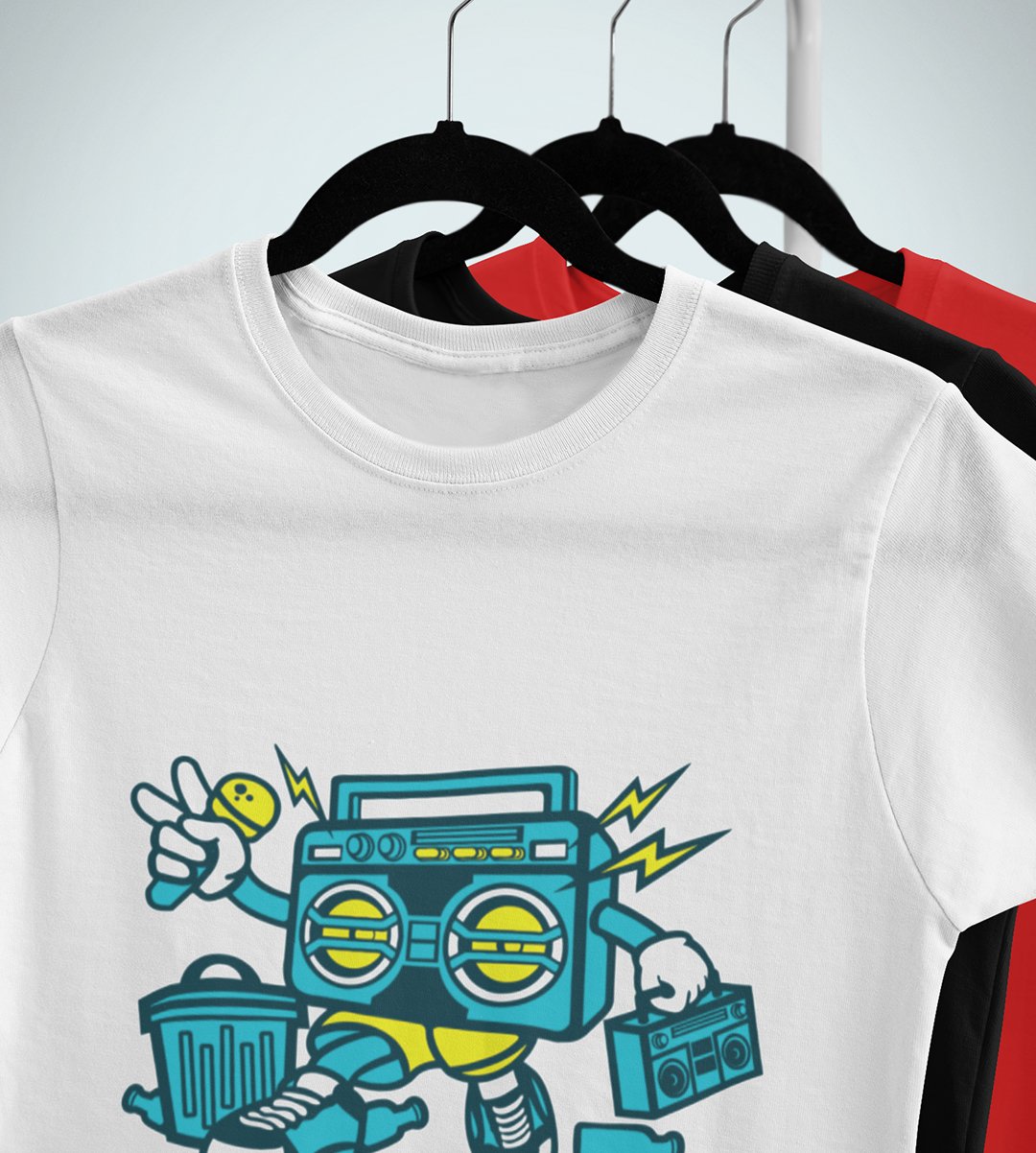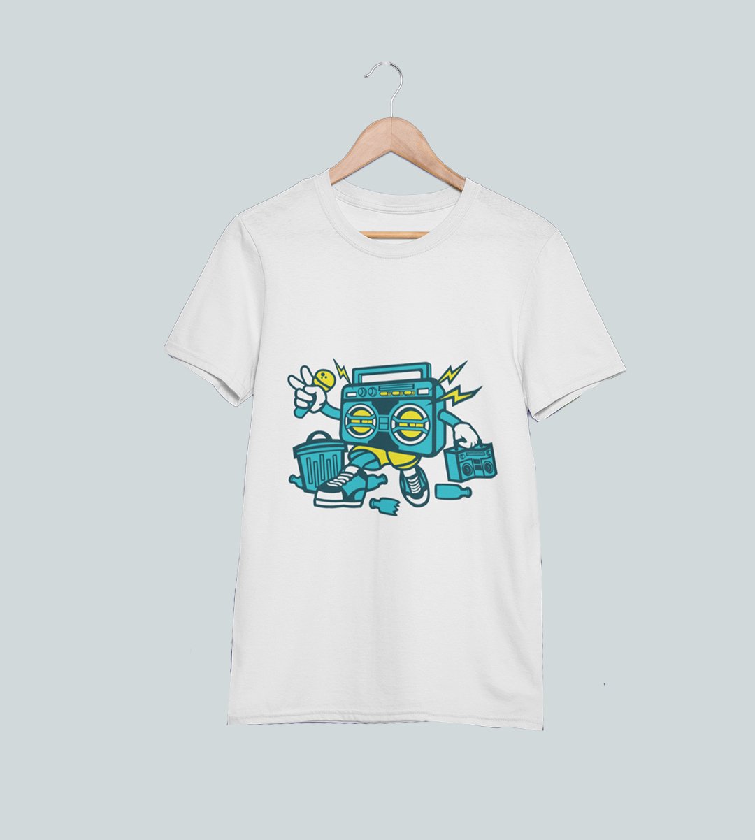 Radio(BG Blue) Illustration art -round crew neck cotton tshirts for men