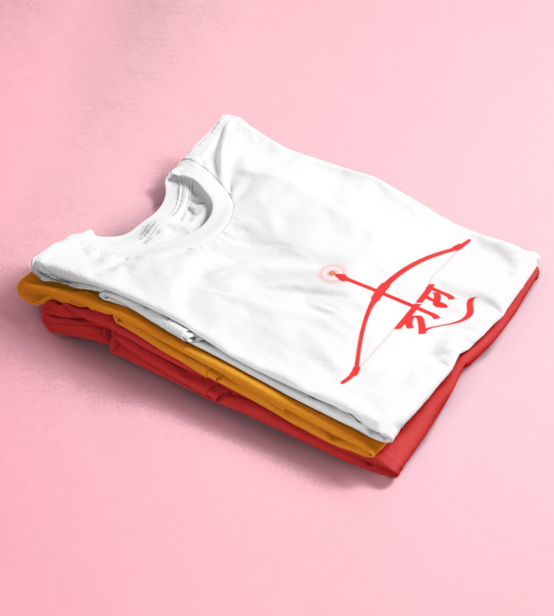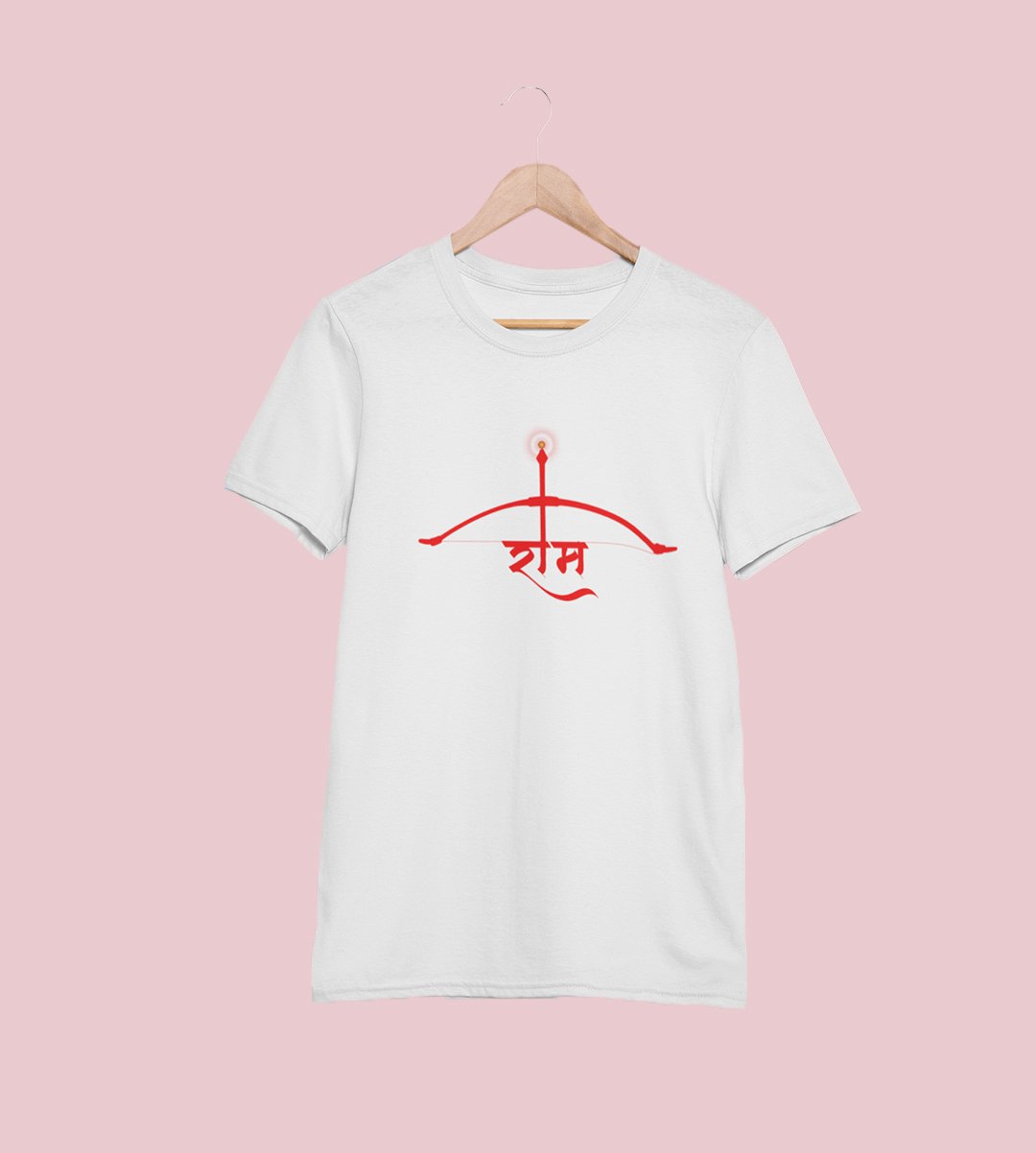 Ram and Crossbow (red) printed unisex adults round neck cotton half-sleeve white tshirt specially for Navratri festival/ Durga puja