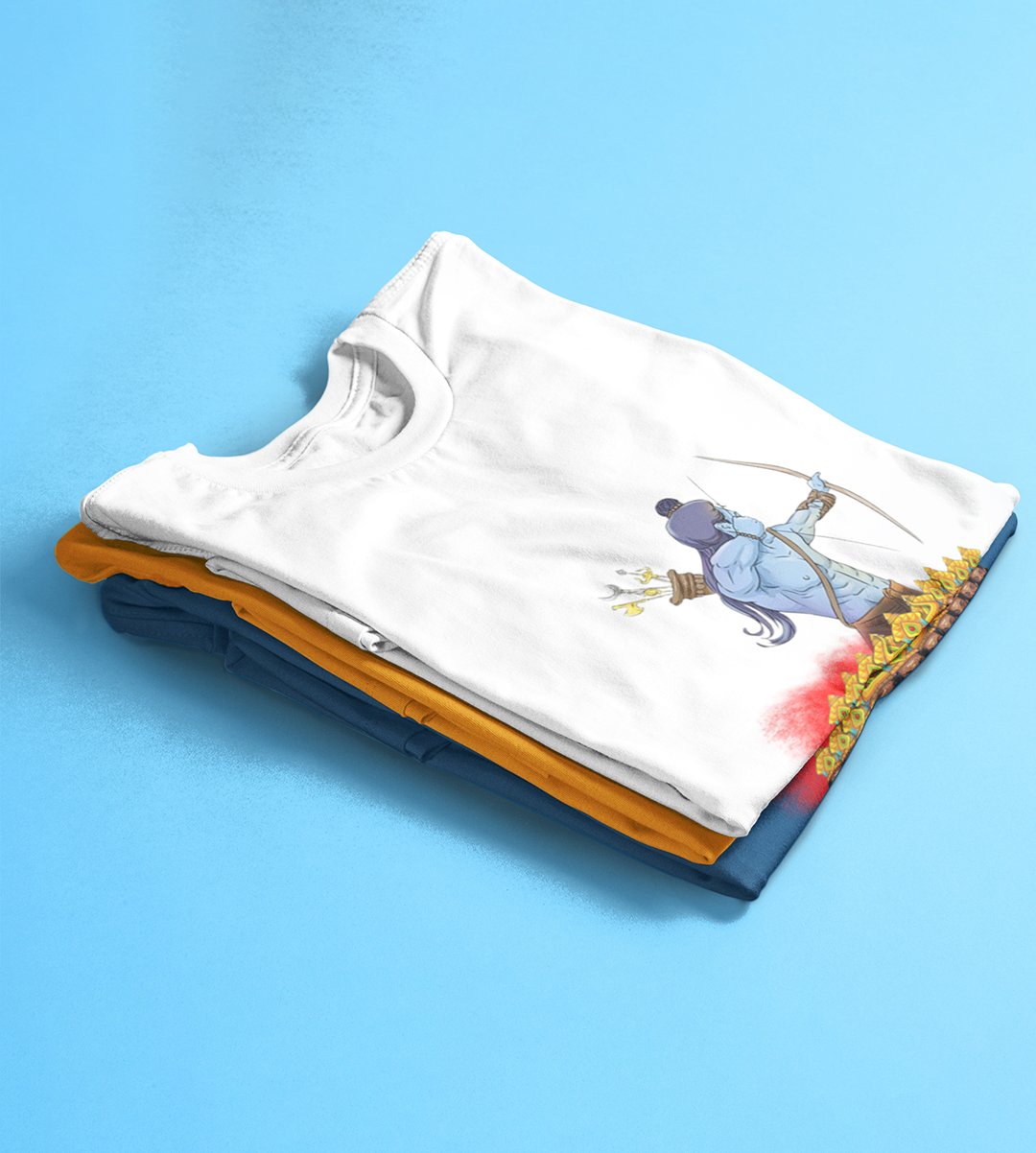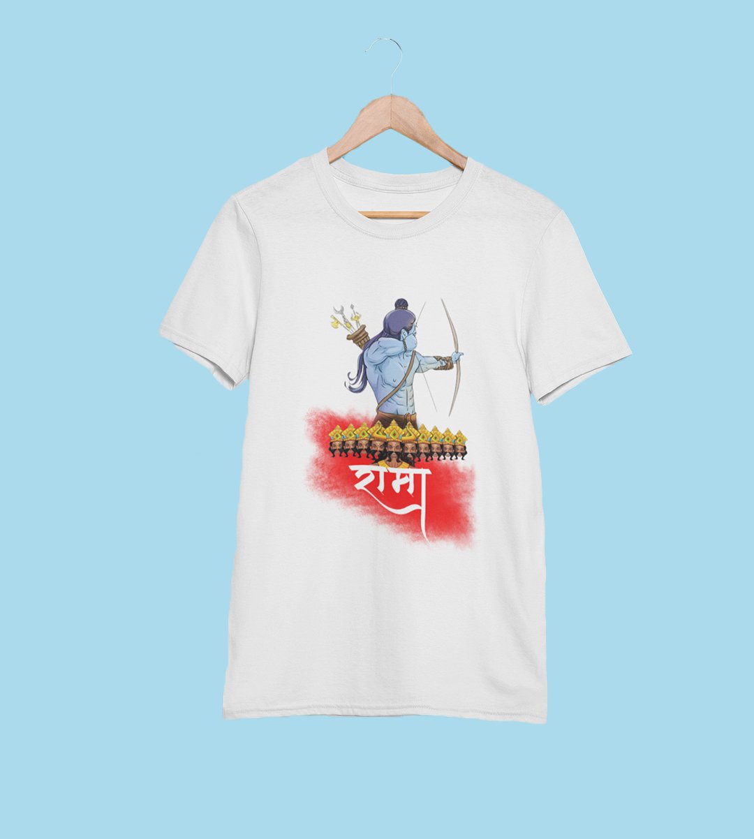 Ram and Ravan printed unisex adults round neck cotton half-sleeve white tshirt specially for Navratri festival/ Durga puja