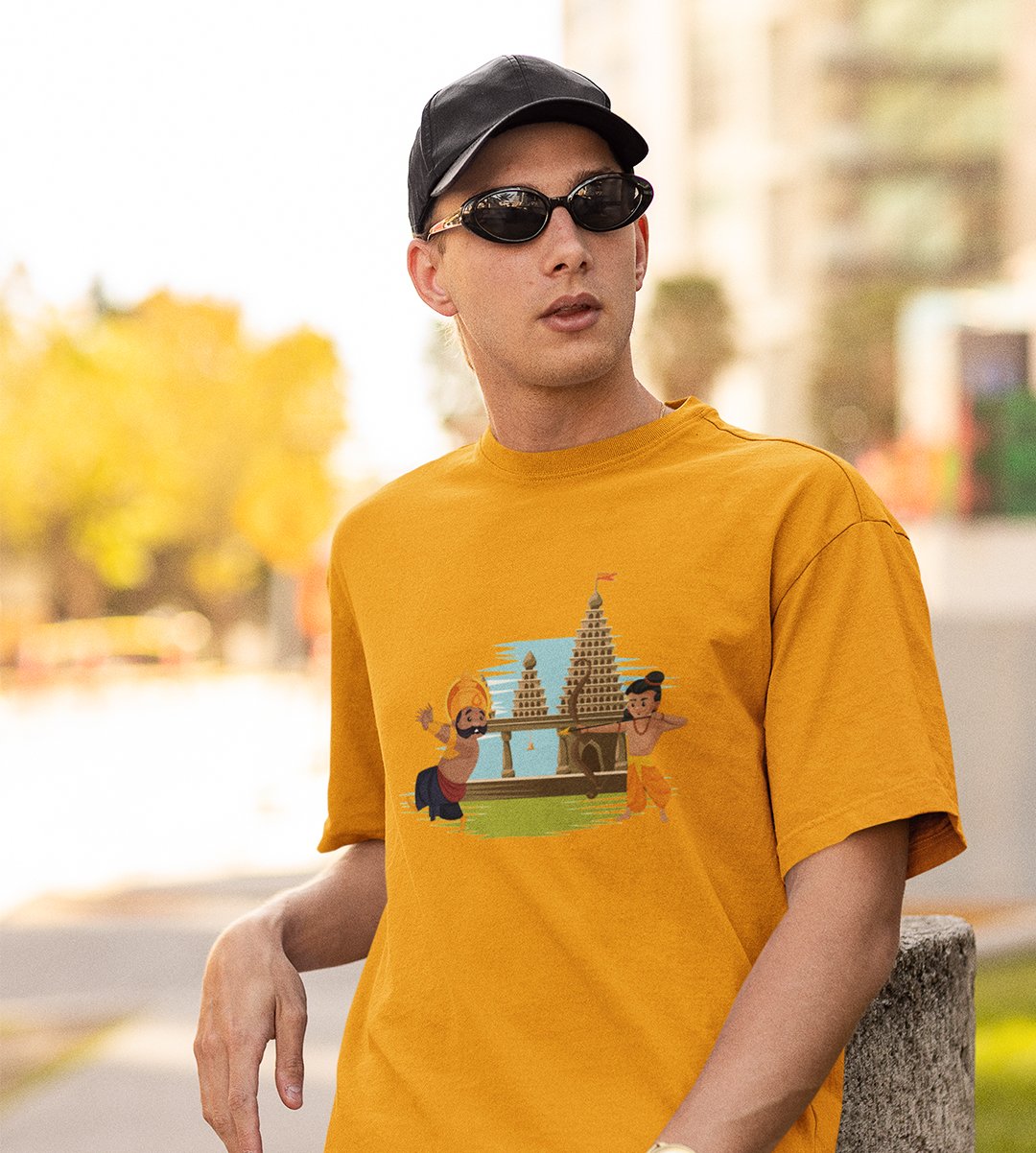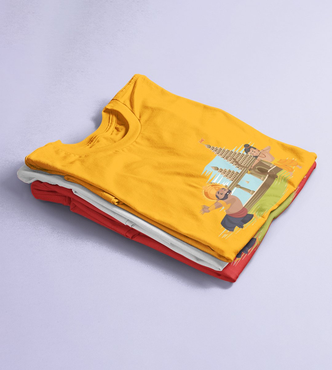 Ram and ravan printed unisex adults round neck cotton half-sleeve yellow tshirt specially for Navratri festival/ Durga puja
