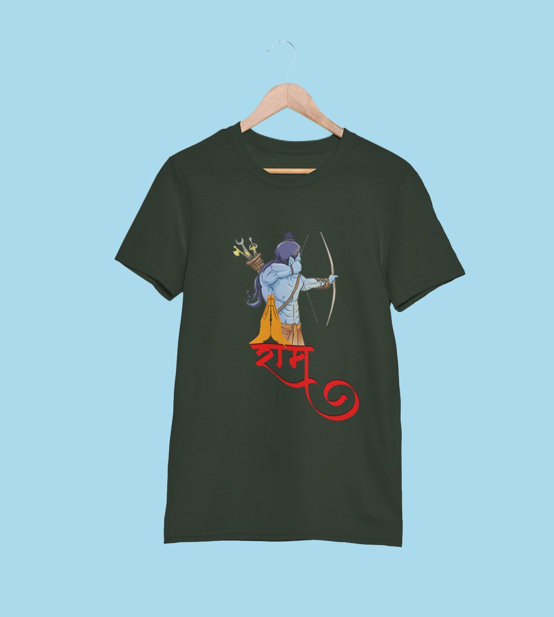 Ram animated printed unisex adults round neck cotton half-sleeve green tshirt specially for Navratri festival/ Durga puja