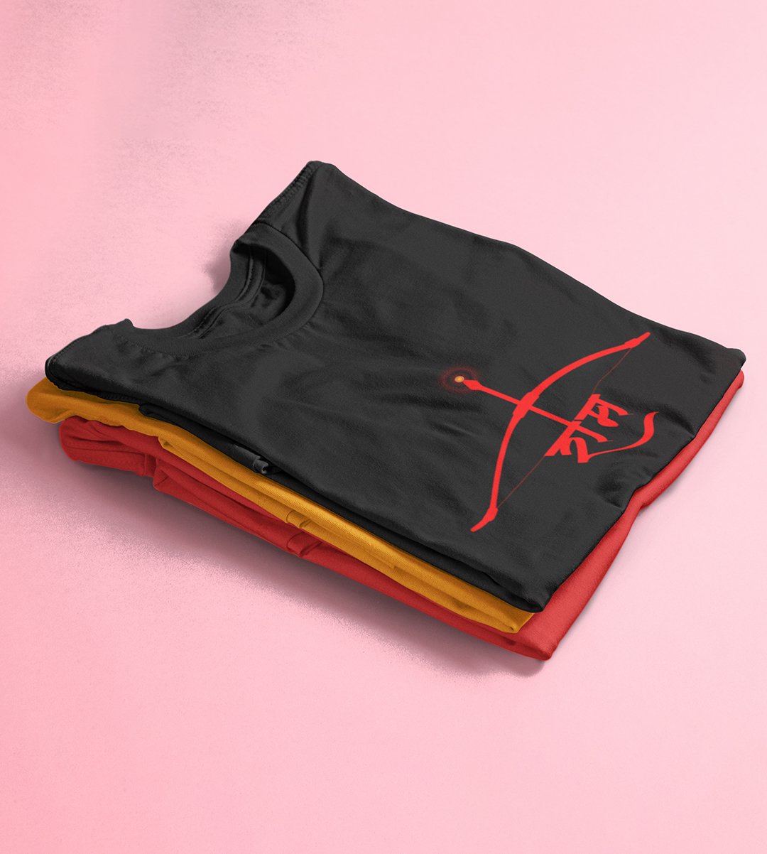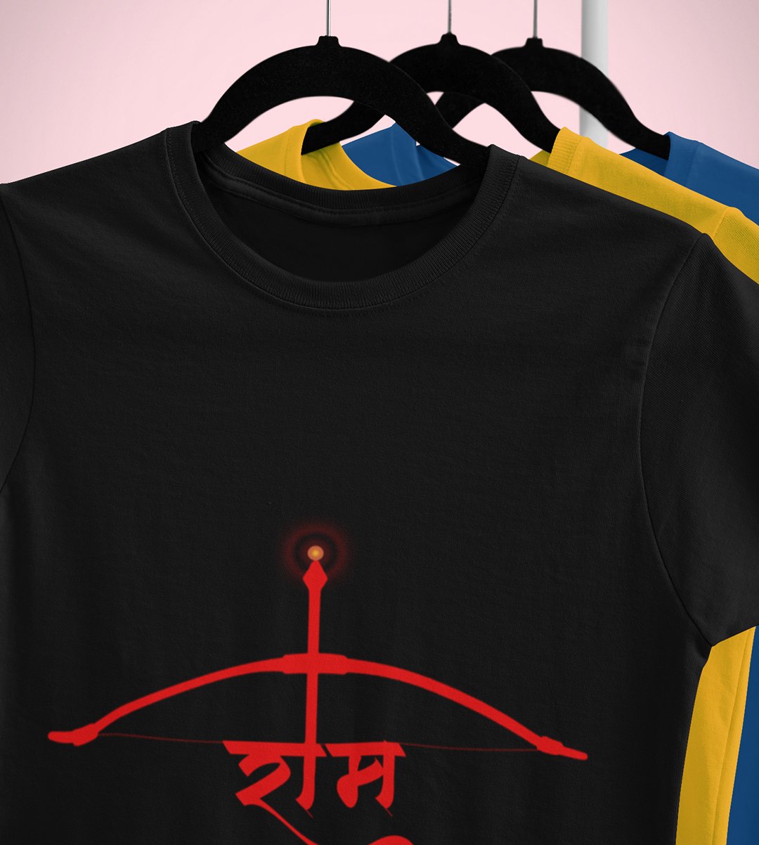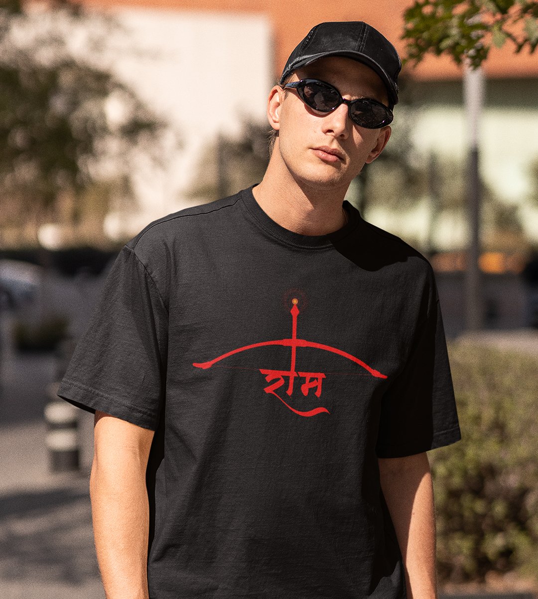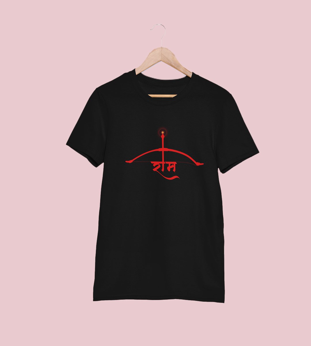 Ram (red crossbow) printed unisex adults round neck cotton half-sleeve black tshirt specially for Navratri festival/ Durga puja