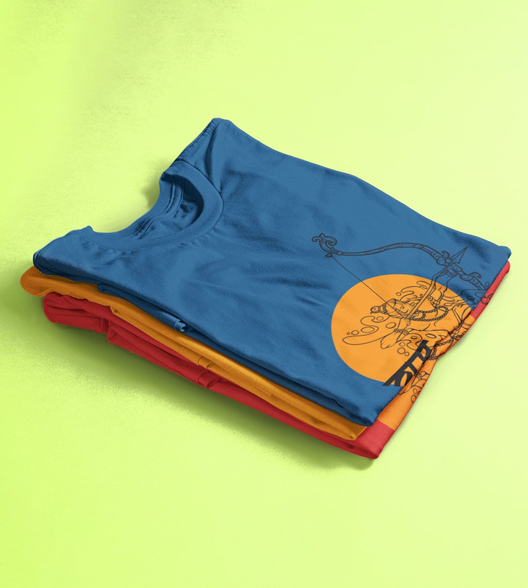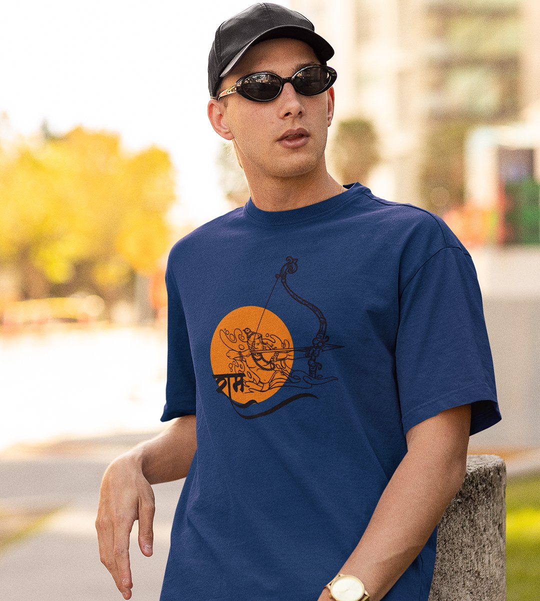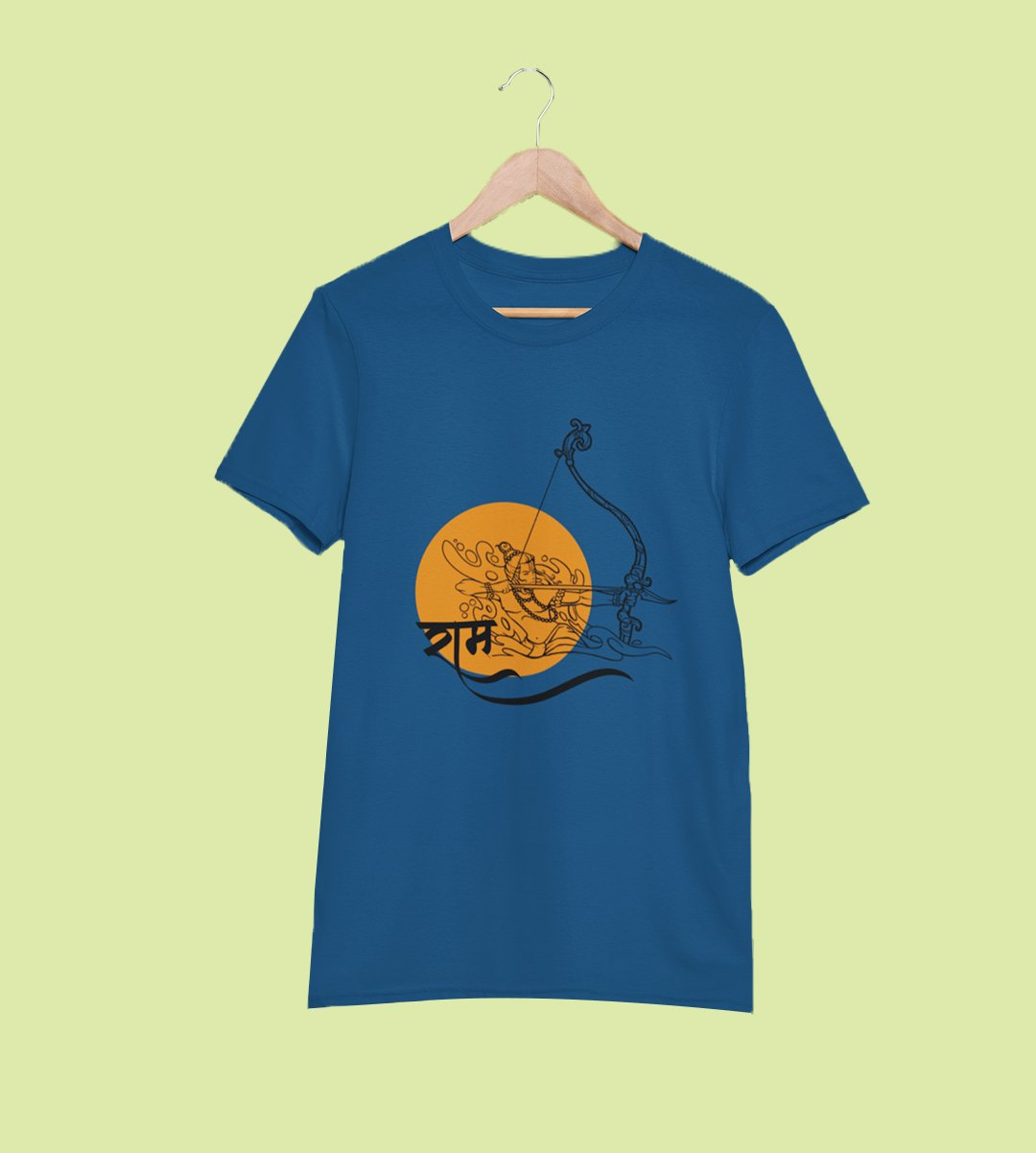 Ram text (BG yellow) printed unisex adults round neck cotton half-sleeve blue tshirt specially for Navratri festival/ Durga puja