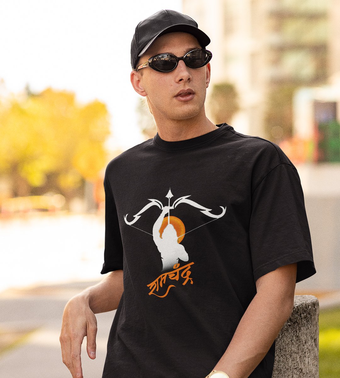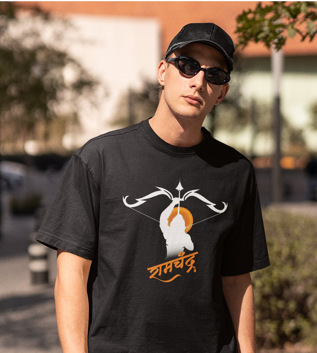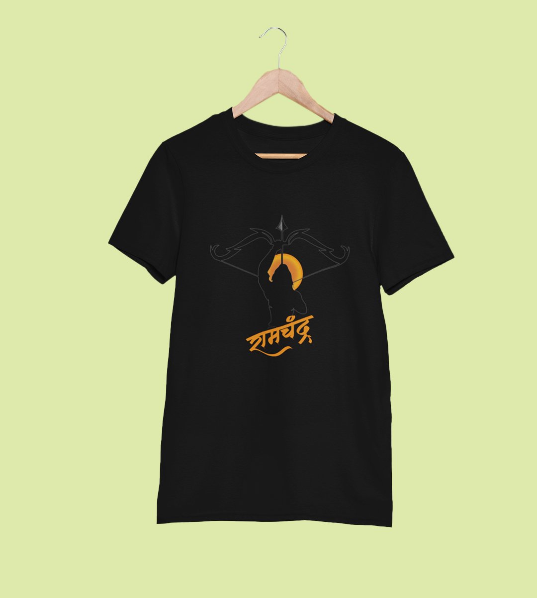 Ramchandra text printed unisex adults round neck cotton half-sleeve black tshirt specially for Navratri festival/ Durga puja