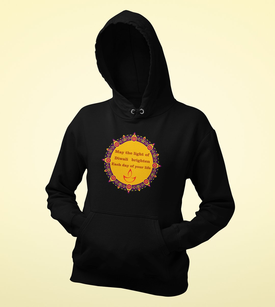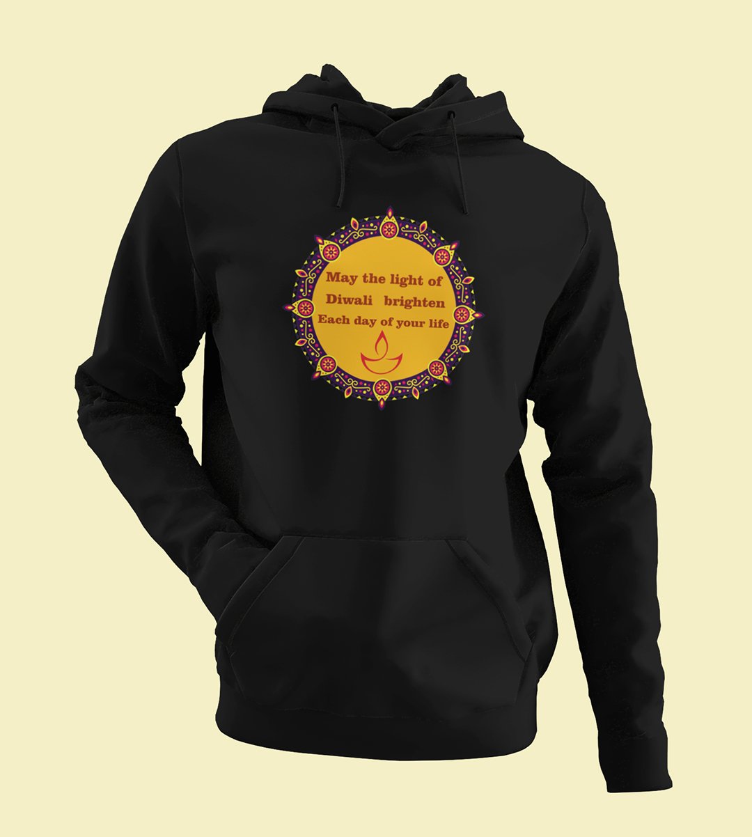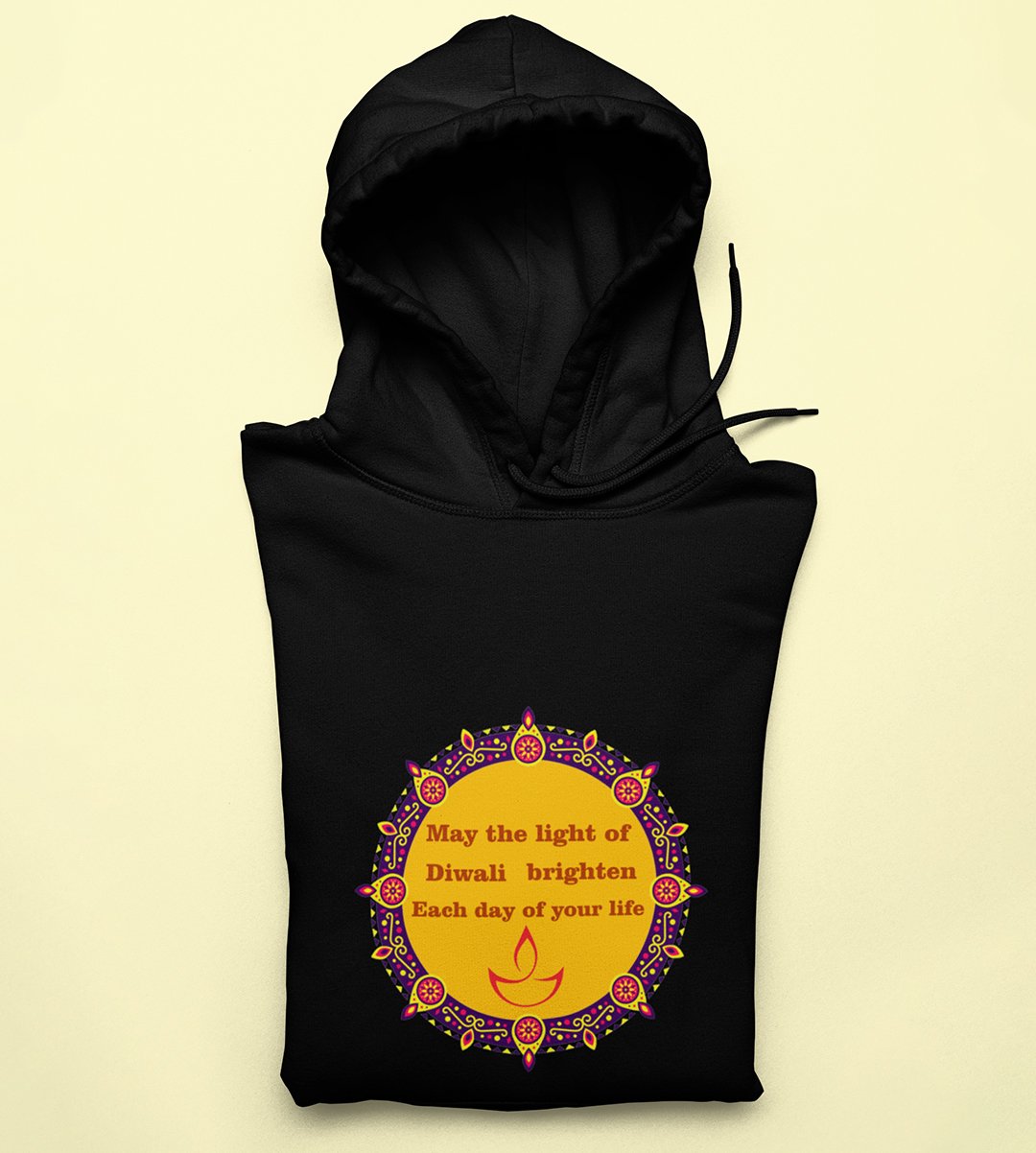 Embrace the spirit of Diwali with our "Diwali Blessings" black Hoodie . The message "May the Light of Diwali Brighten Each Day of Your Life" radiates warmth and positivity. As you sip your , let this black Hoodie serve as a daily reminder of the festival's blessings and the light it brings to every day.