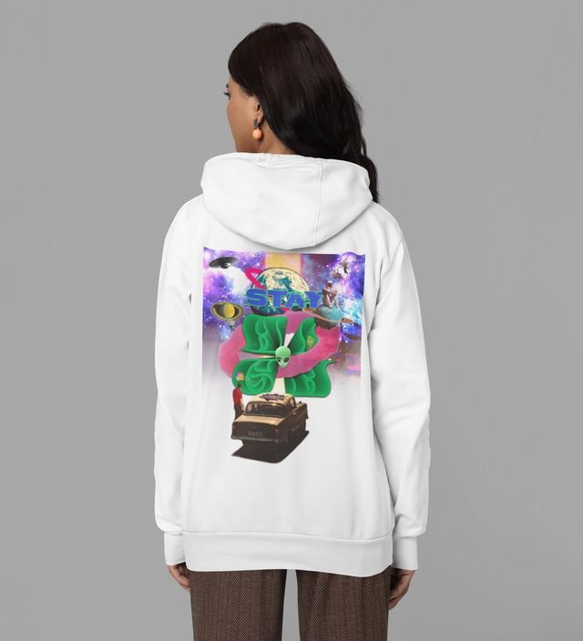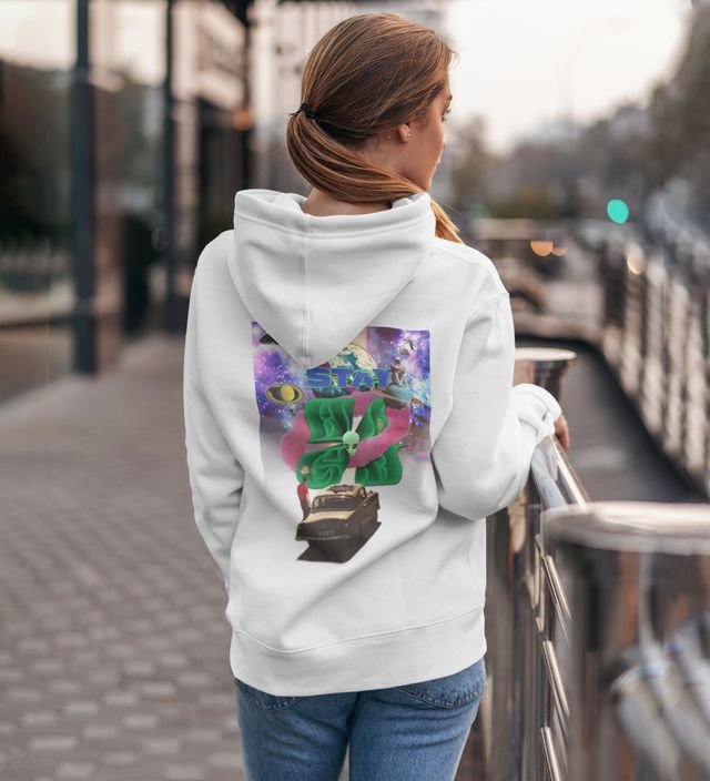 Reach for the Stars Stay High White Cotton Printed Hoodies For Women