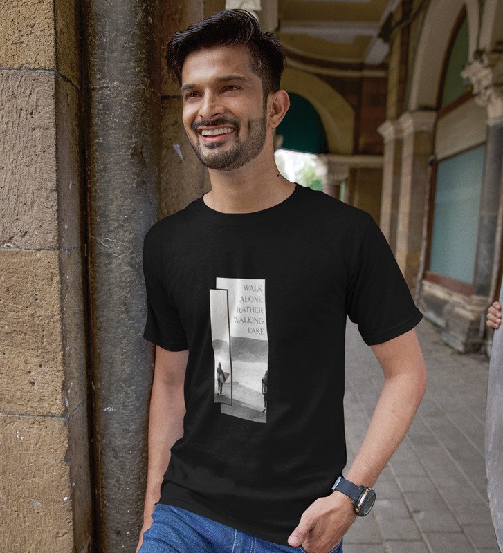 Real Talk Real Walk by Black Urban Vibes: Front Printed Oversized Round Neck Tee - Men's Street Style"