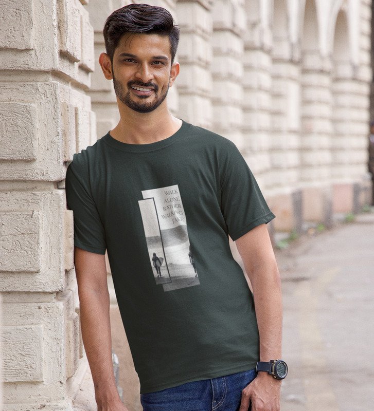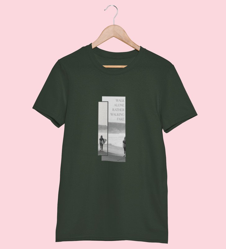 Real Talk Real Walk by Green Urban Vibes: Front Printed Oversized Round Neck Tee - Men's Street Style"