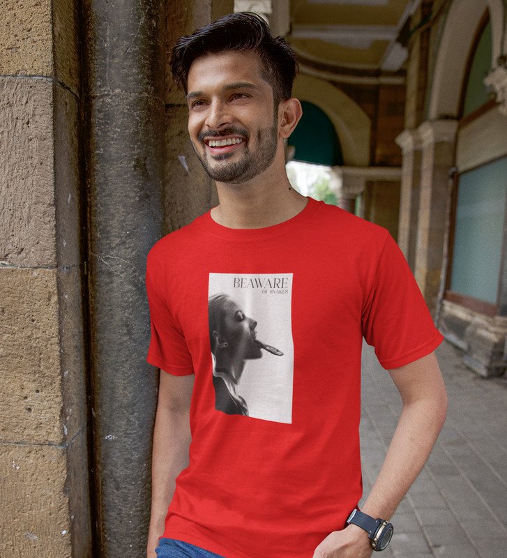 Real World, Red Elevated Elegance: Front Printed Tee - Men's Stylish Statement