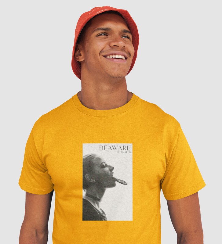 Real World, Yellow Elevated Elegance: Front Printed Tee - Men's Stylish Statement