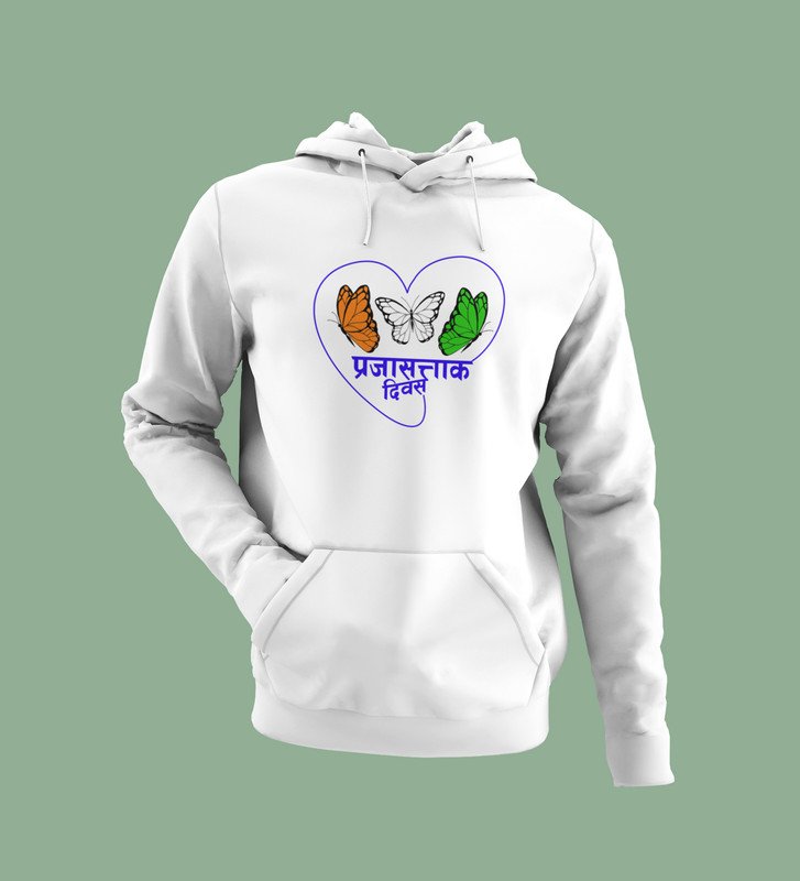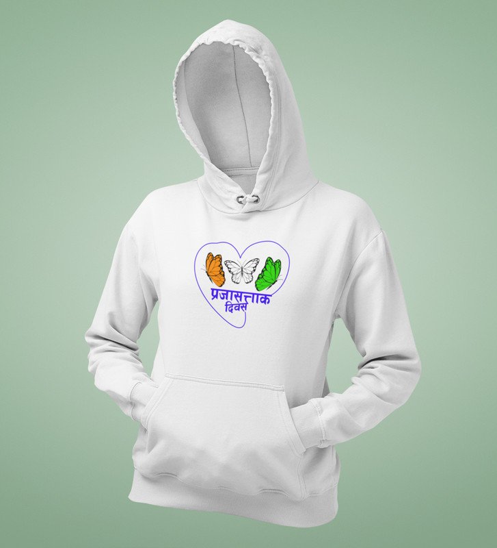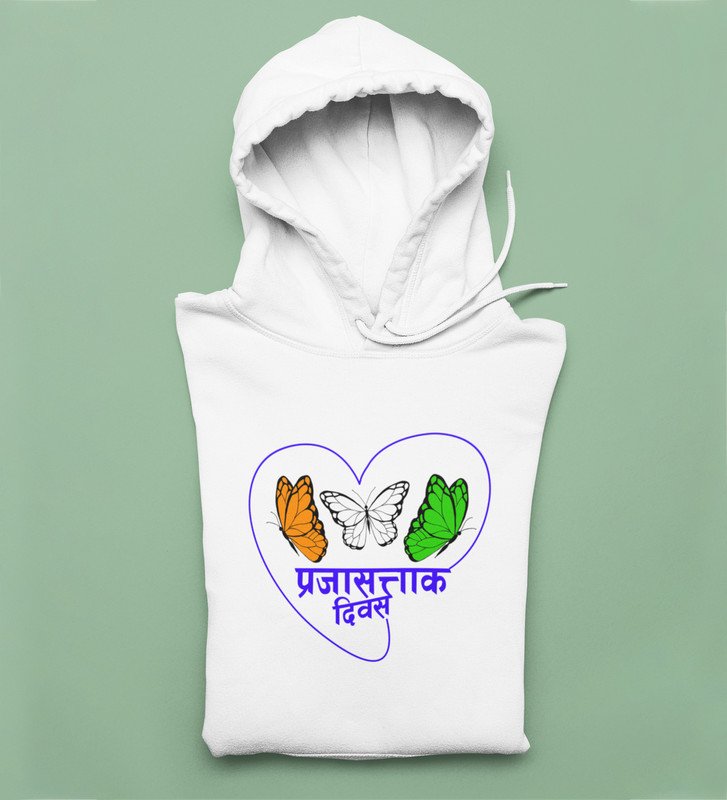 Rebel Republic Day White Round Neck Printed Hoodies For Mens Boys
