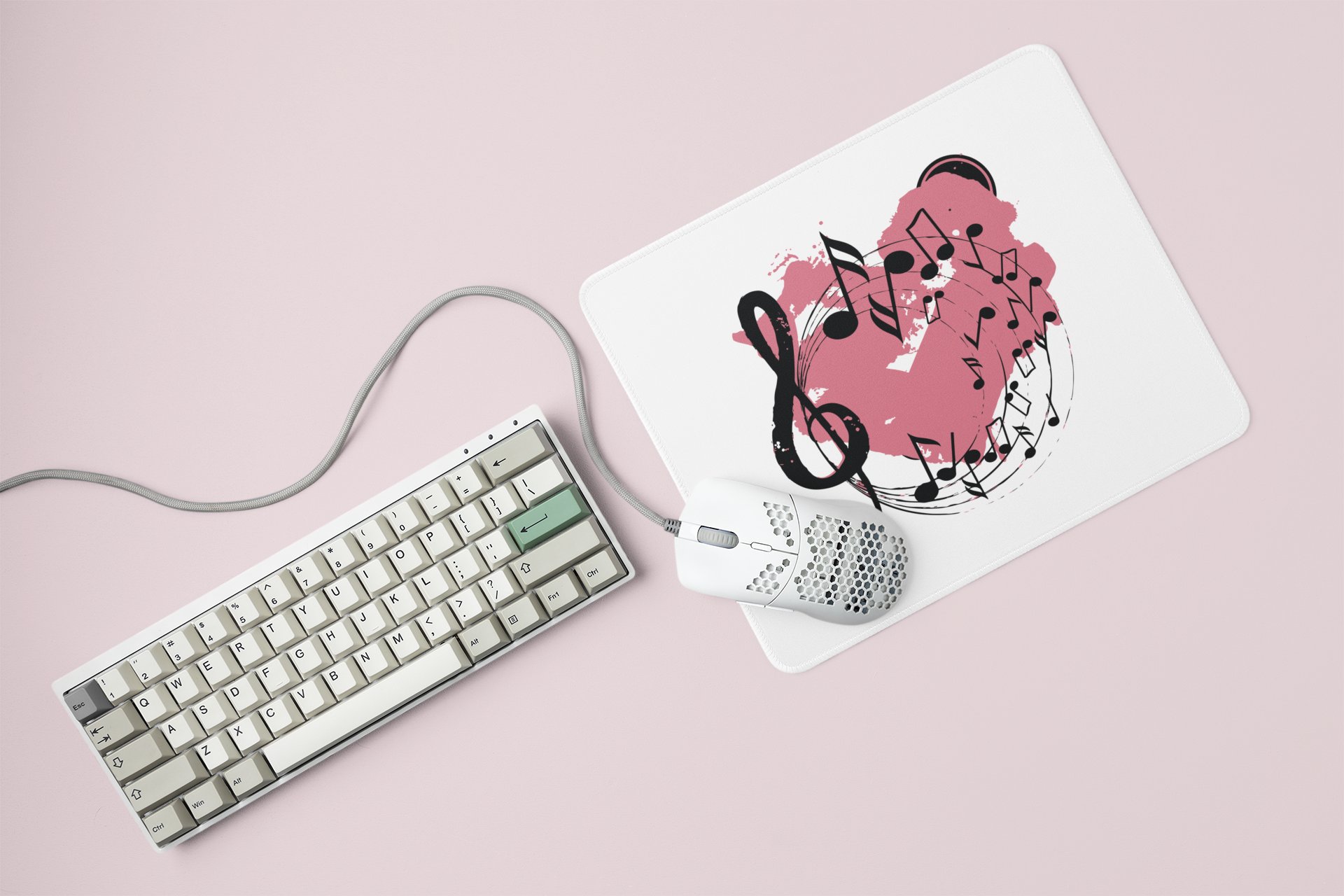 Red Heart Surrounded By Musical notes Printed Mousepads For Music Lovers