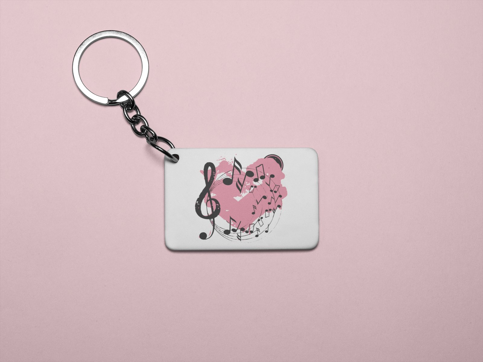 Red Heart Surrounded By Musical notes -White -Designable Musicllnstrument Keychain ( Combo Set Of 2)