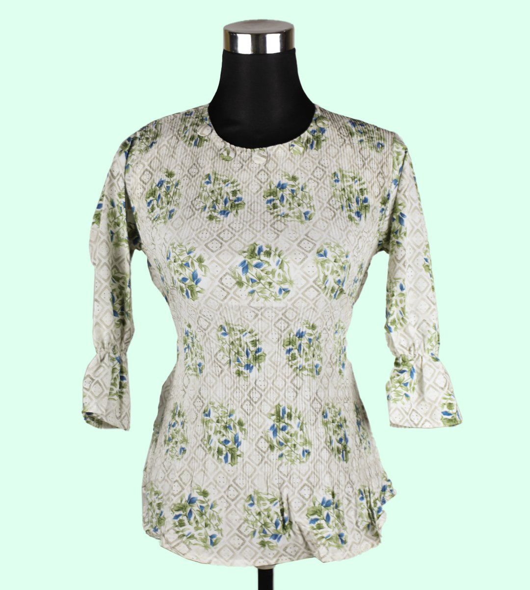 Elevate your wardrobe with our Women's Cream Top featuring a charming Green Floral Print, a refreshing and elegant addition to your style. This top showcases a classic round neck design and offers a regular fit, making it perfect for various occasions. Crafted from soft Rayon fabric, it combines style and breathability. The captivating Green Floral Print adds a touch of refreshment and timeless charm to your look.