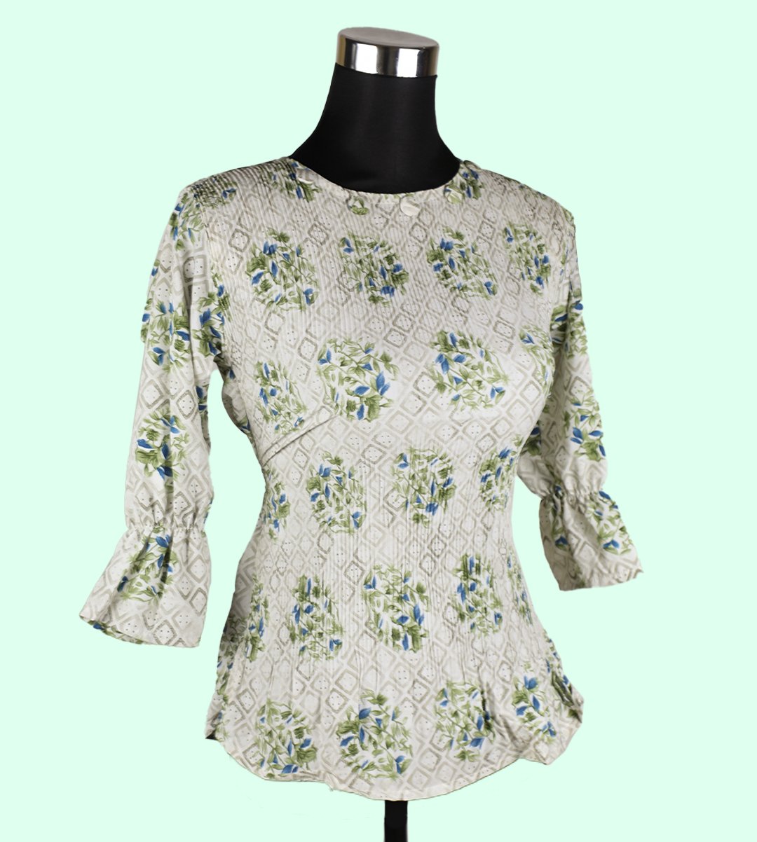 Refreshing Green Florals on Cream - Women's Classic and Stylish Top
