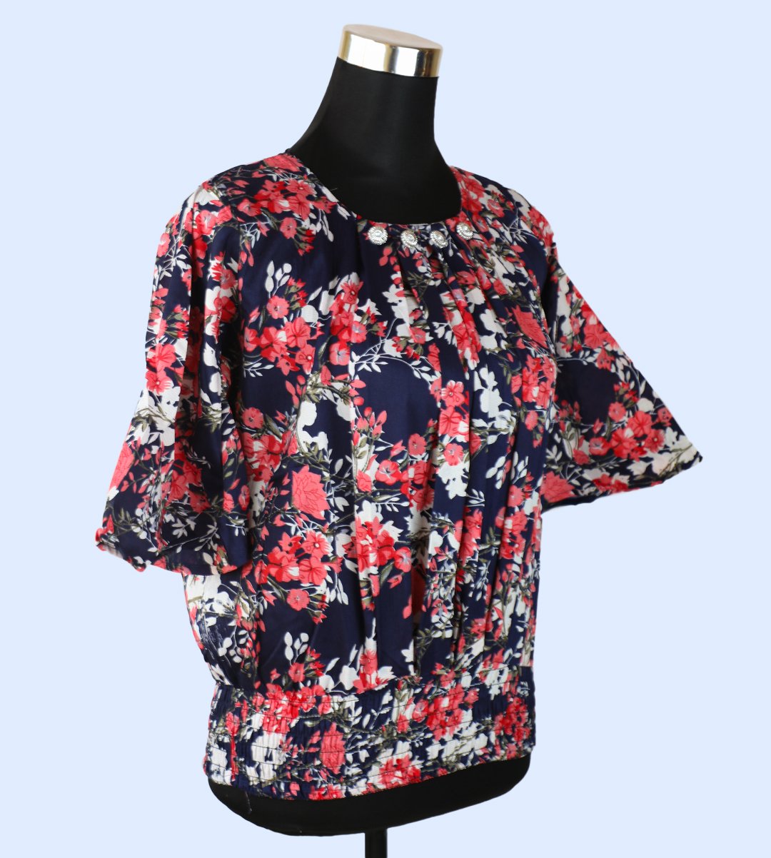 Unveil regal charm with our Women's Violet Top featuring a striking Red Floral Print. This top showcases a classic round neck design and a regular fit, making it perfect for various occasions. Crafted from soft Rayon fabric, it combines style and breathability. The Red Floral Print adds a touch of striking elegance to your look