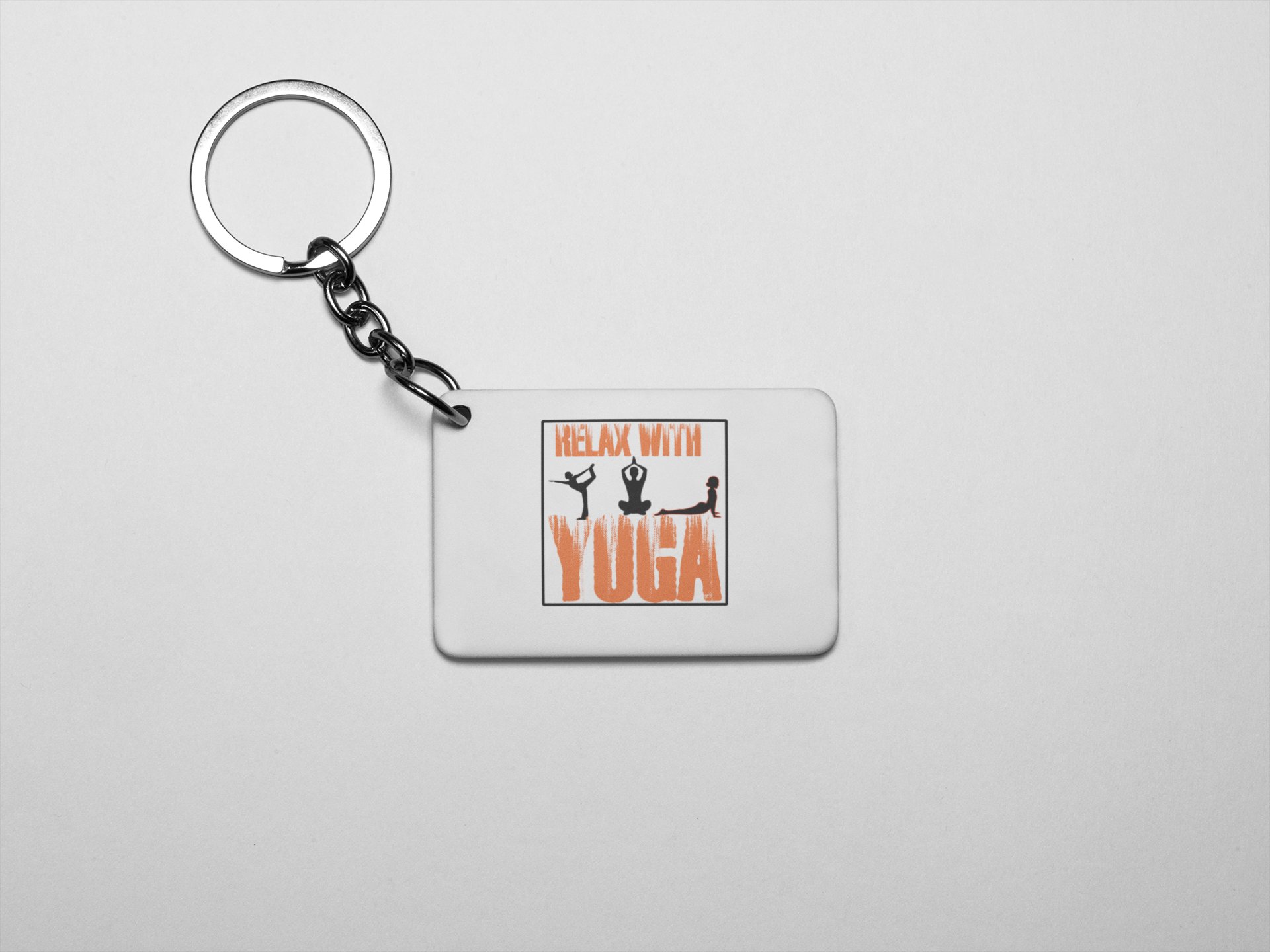Relax With Yoga Text - Printed Acrylic Keychains(Pack Of 2)