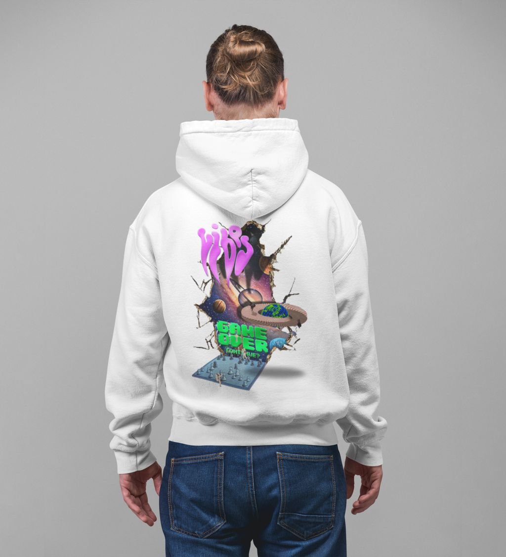Restart Your Vibe Game Over White Cotton Printed Hoodies For Men