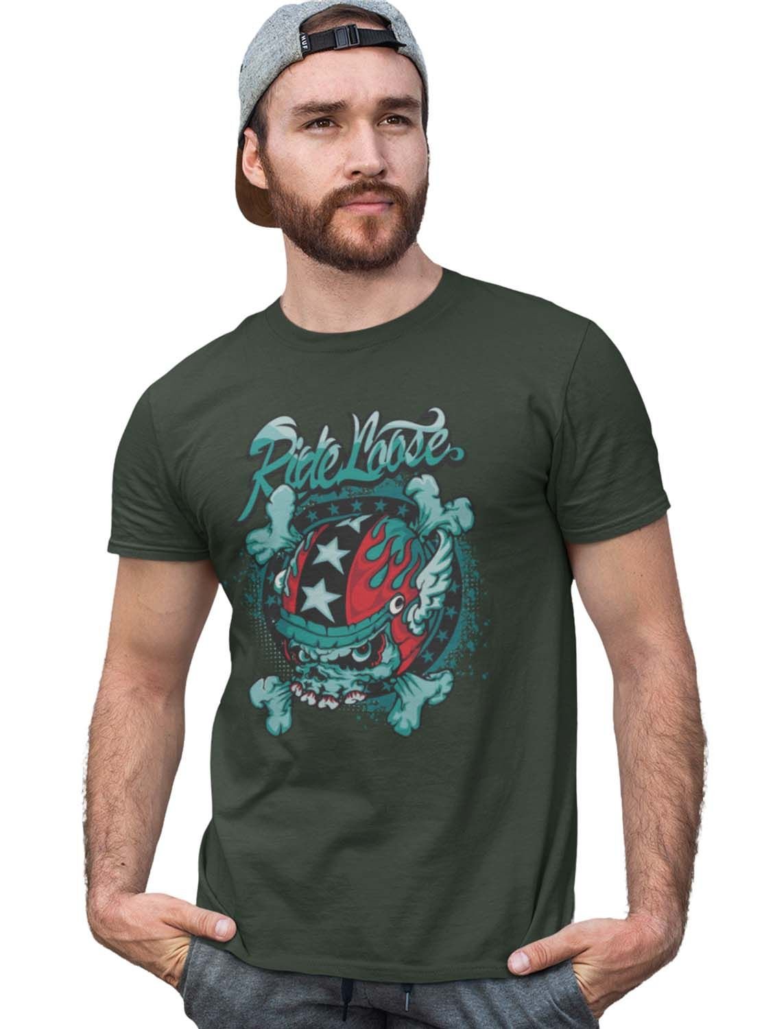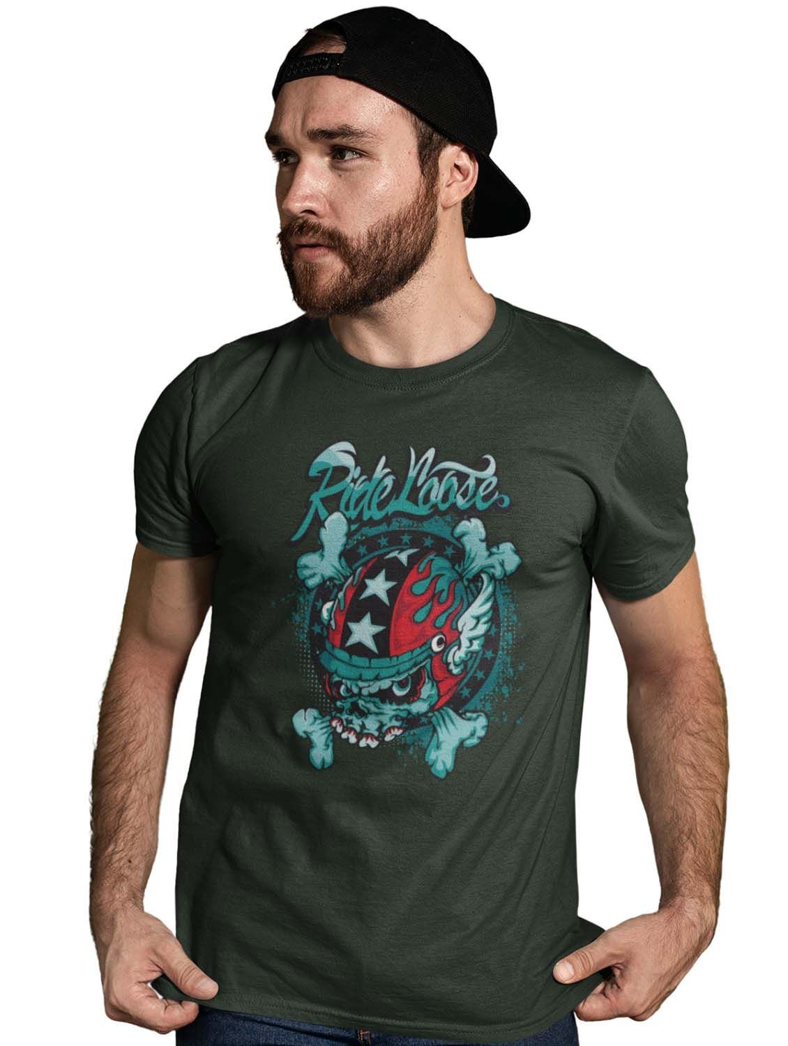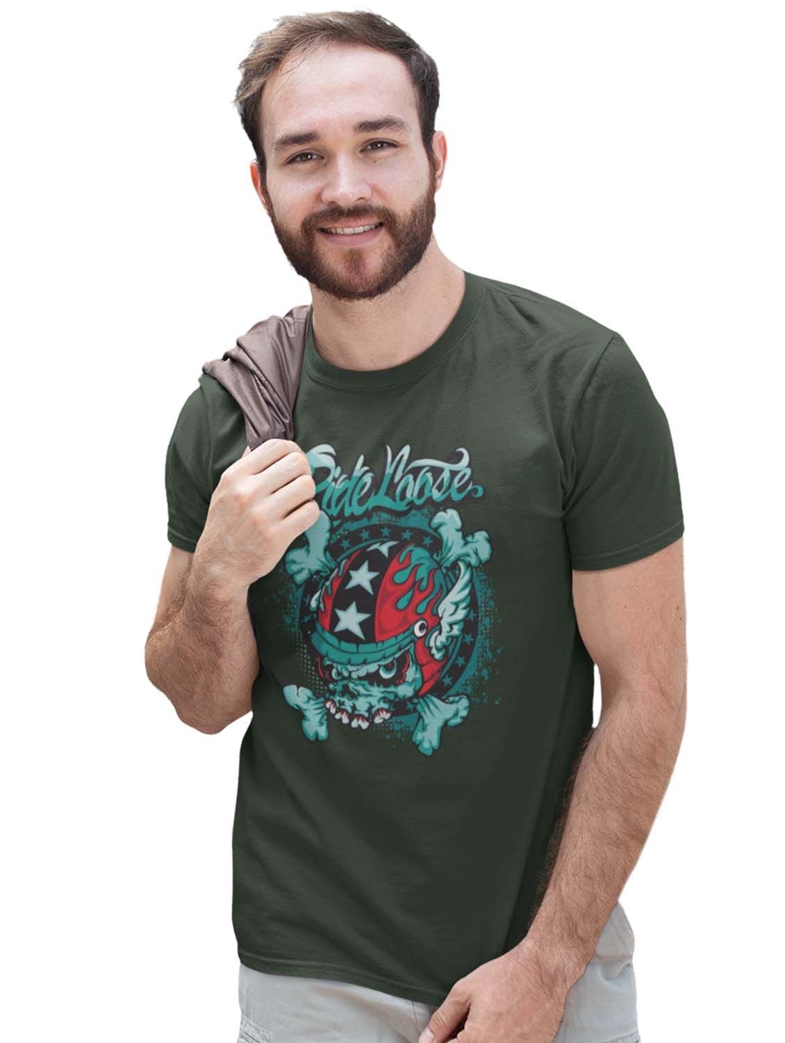 Ride Loose, (BG Blue) Green Round Neck Cotton Half Sleeved T-Shirt with Printed Graphics