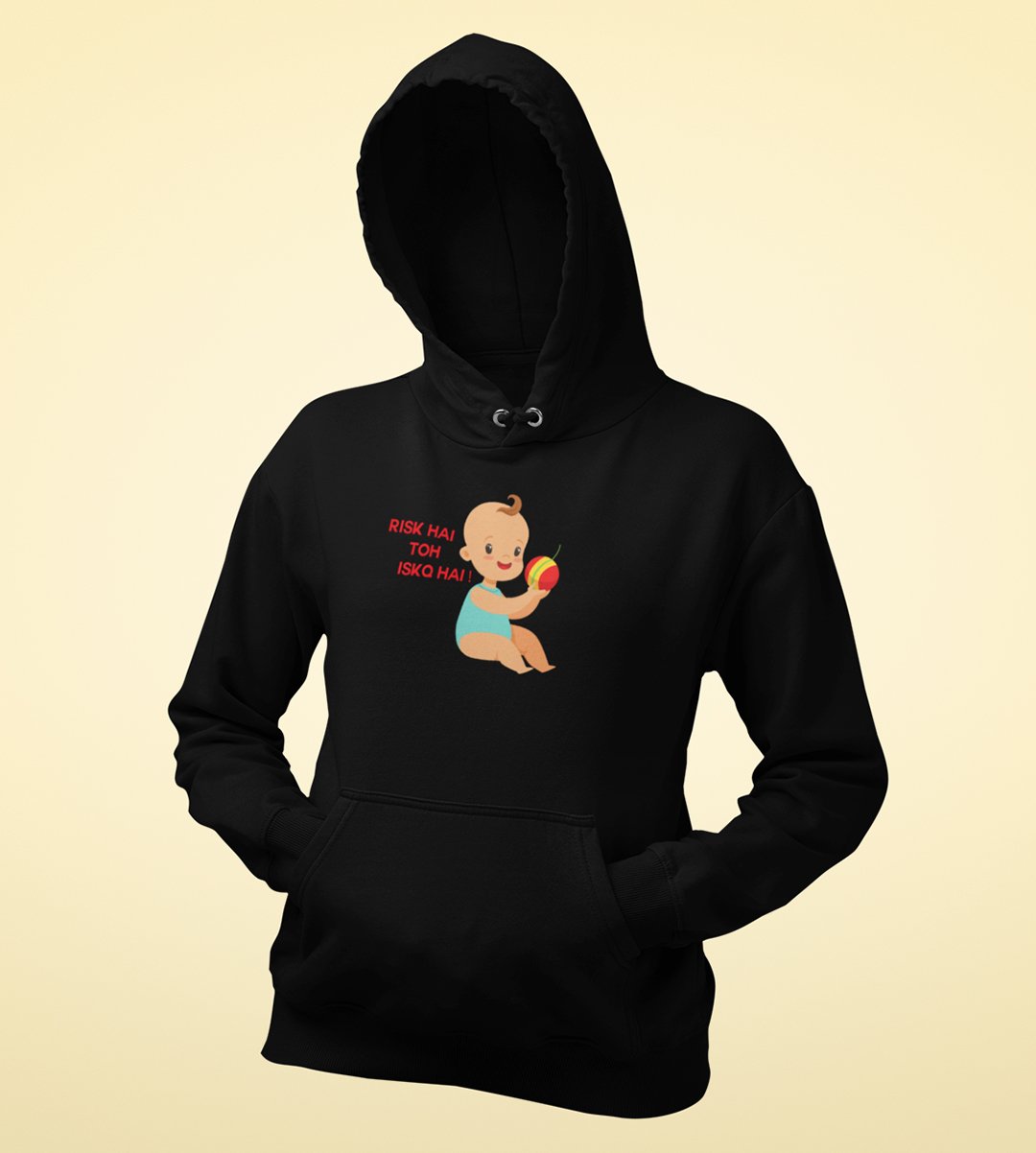 Light up your Diwali celebrations with a dose of humor! Our "Risk Hai To Ishq Hai" black Hoodie is not your typical Diwali sentiment. It's a fun meme-inspired design that adds laughter and wit to your festival. Crafted with premium quality, it's the perfect gift to spread smiles during the season of lights.