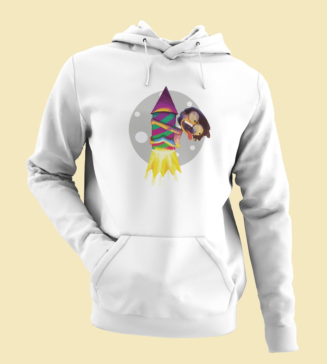 Rocket cracker printed diwali themed White Hoodie specially for diwali festival