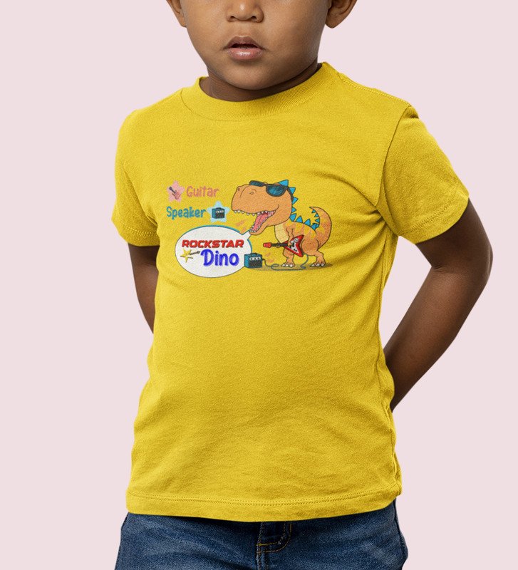 Rockstar Dino, Boys Printed Crew Neck T-Shirt