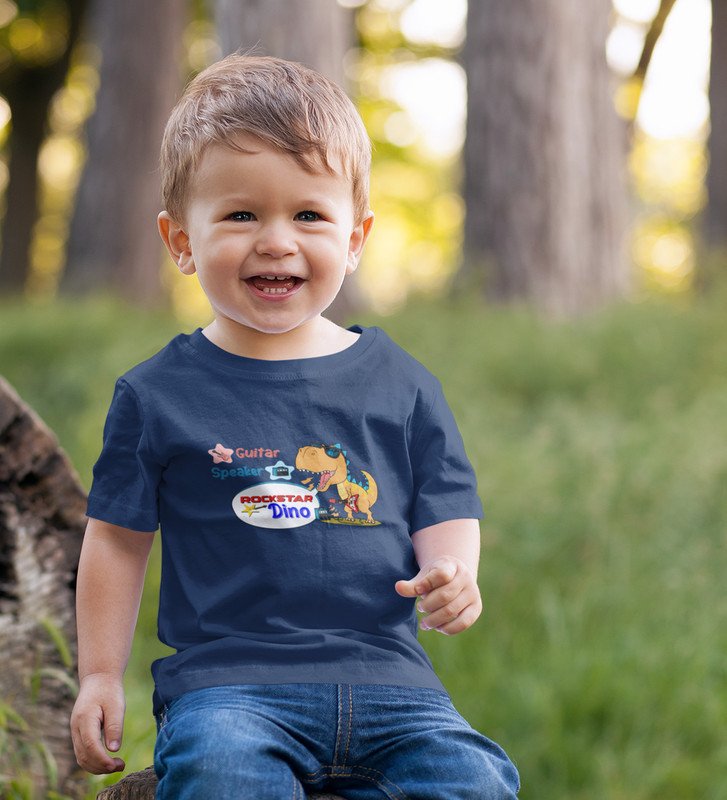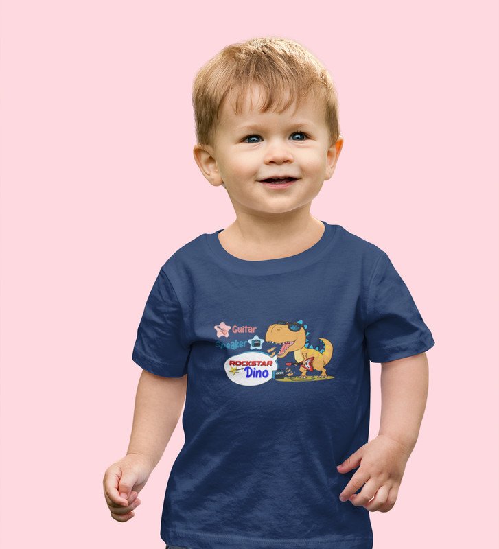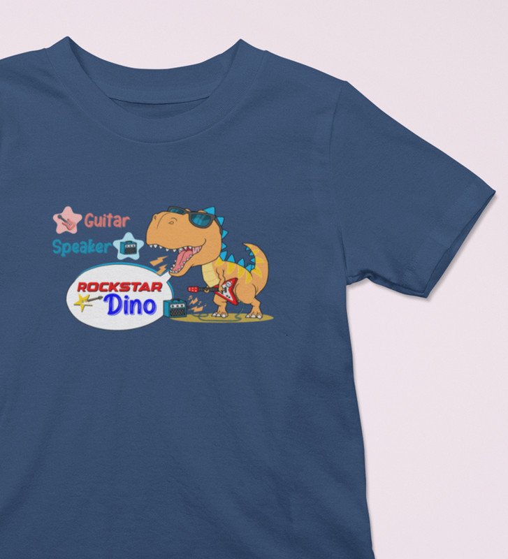 Rockstar Dino, Boys Printed Crew Neck T-shirt (Navy Blue)