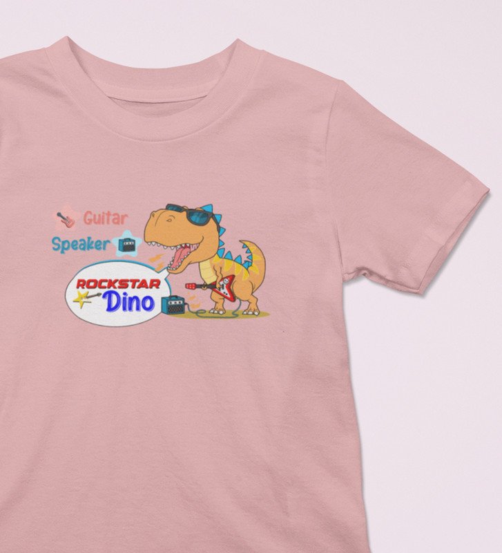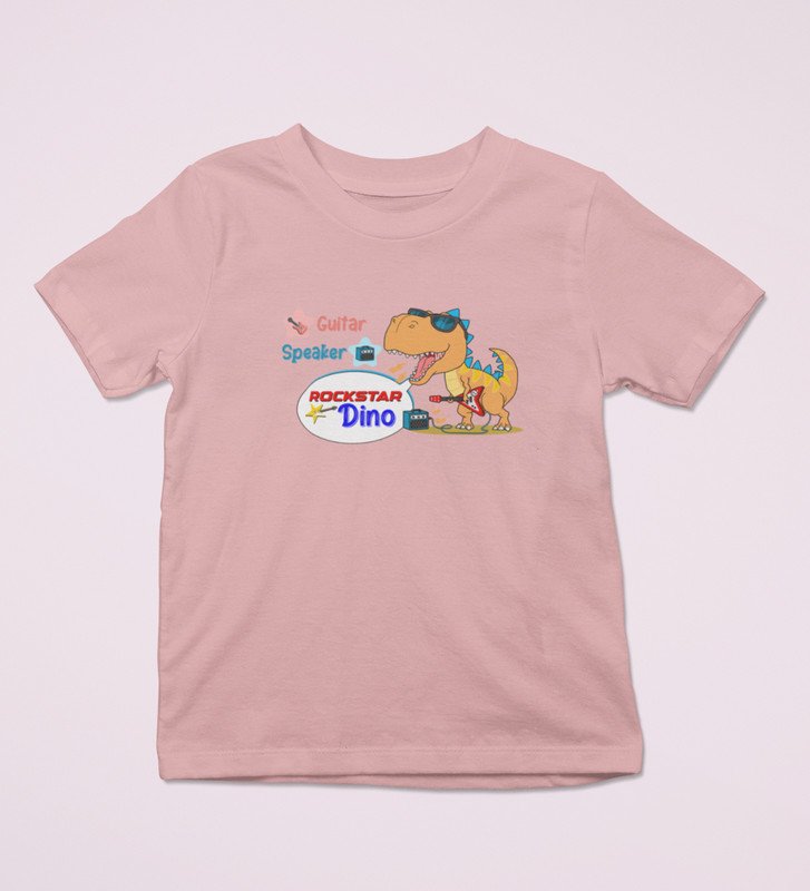 Rockstar Dino, Boys Printed Crew Neck Tshirt (baby pink)