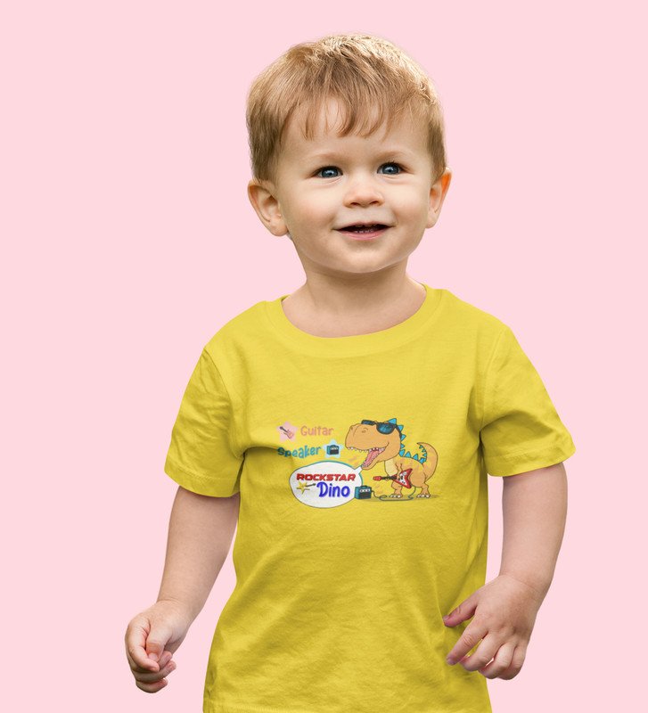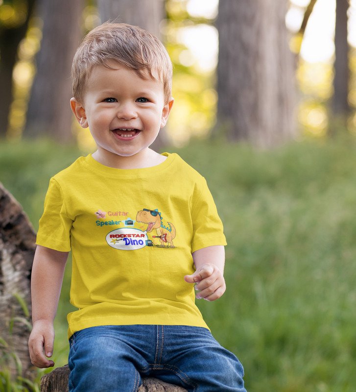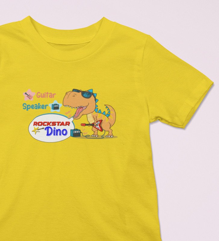 Rockstar Dino, Boys Printed Crew Neck Tshirt (Yellow)