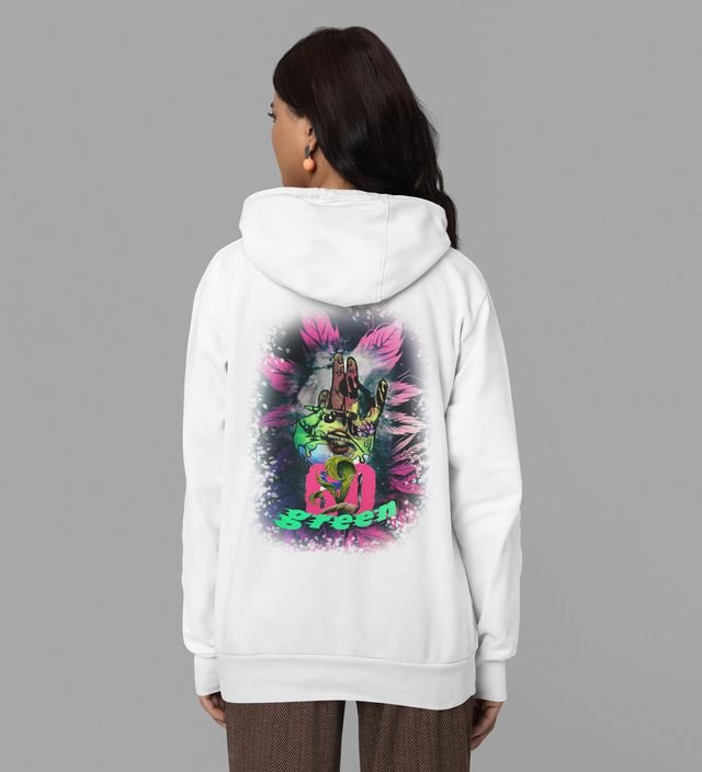 Roll with Nature Style That Celebrates the Green Life White Cotton Printed Hoodie For Women