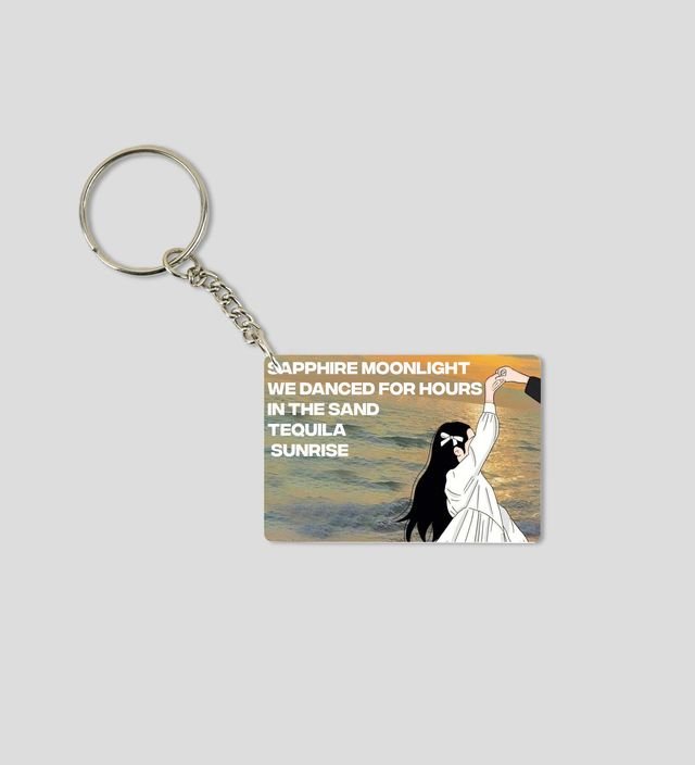 Celebrate timeless romance with this beautifully illustrated printed keychain set. Featuring a couple dancing by the sea under a golden sunset, it captures the magic of love, music, and dreamy evenings. The soft beach tones and artistic expressions make it perfect for couples who cherish meaningful memories and poetic vibes. A lovely gift to express feelings without words