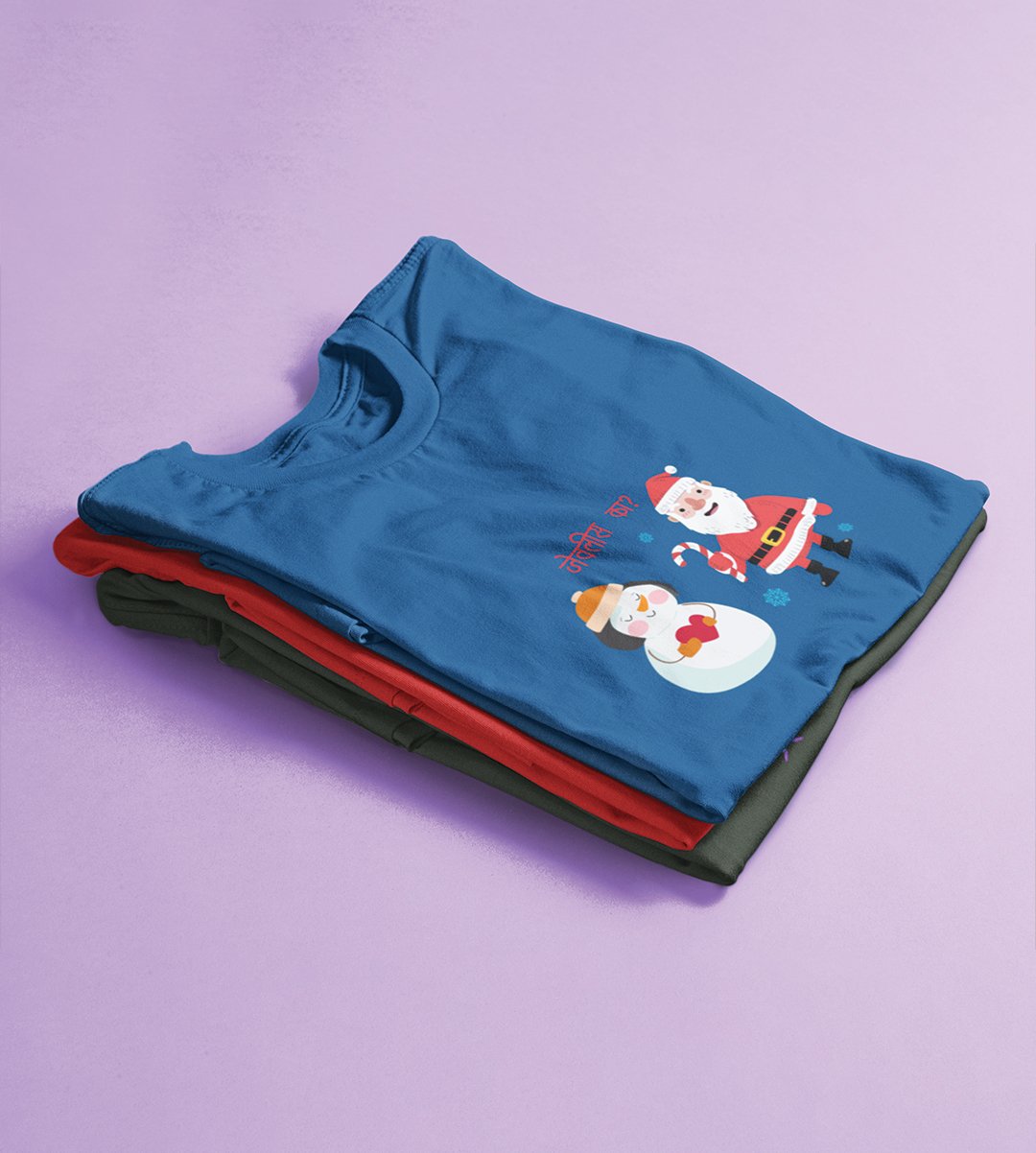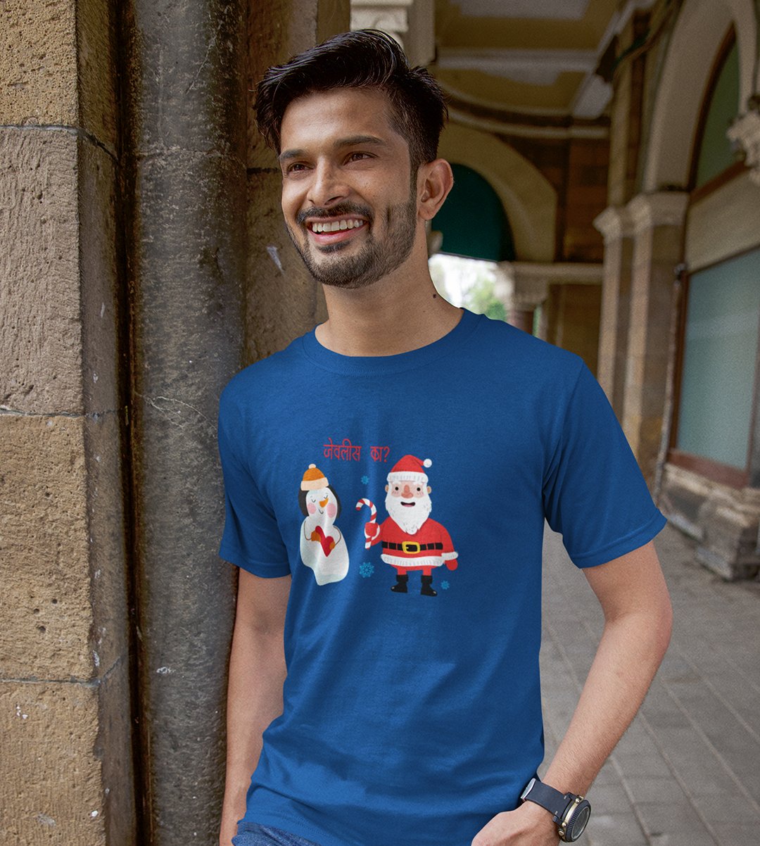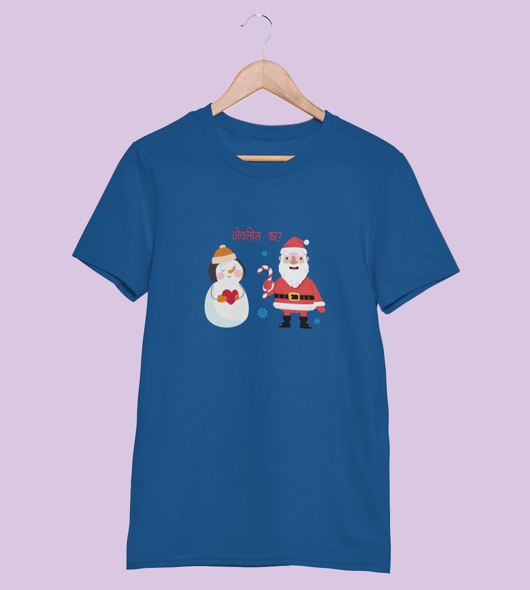 Romantic Santa : Funny Printed T-shirt (Blue) Perfect Gift For Secret Santa