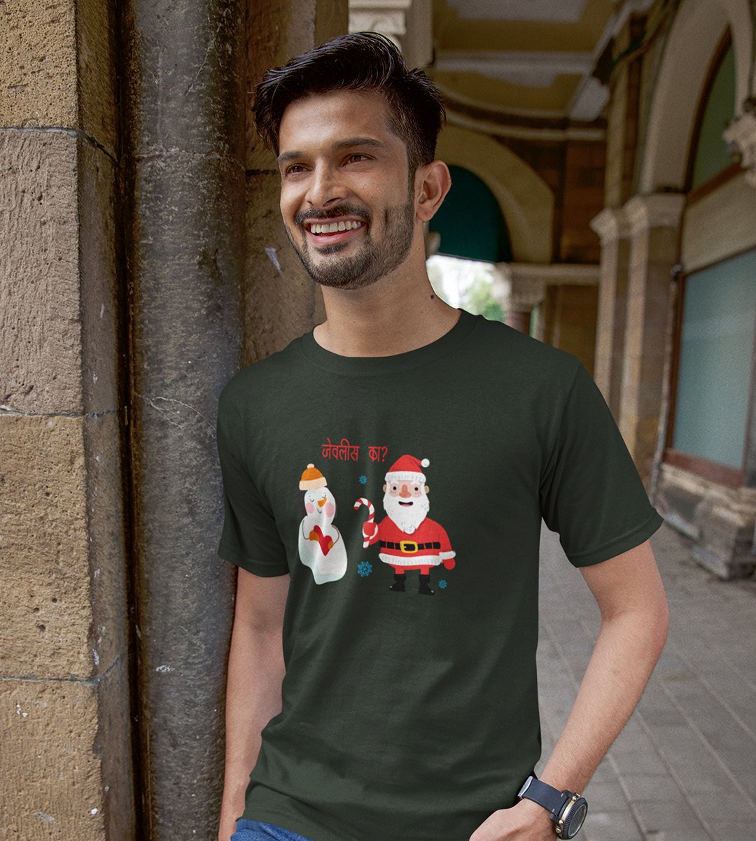 Romantic Santa : Funny Printed T-shirt (Green) Perfect Gift For Secret Santa
