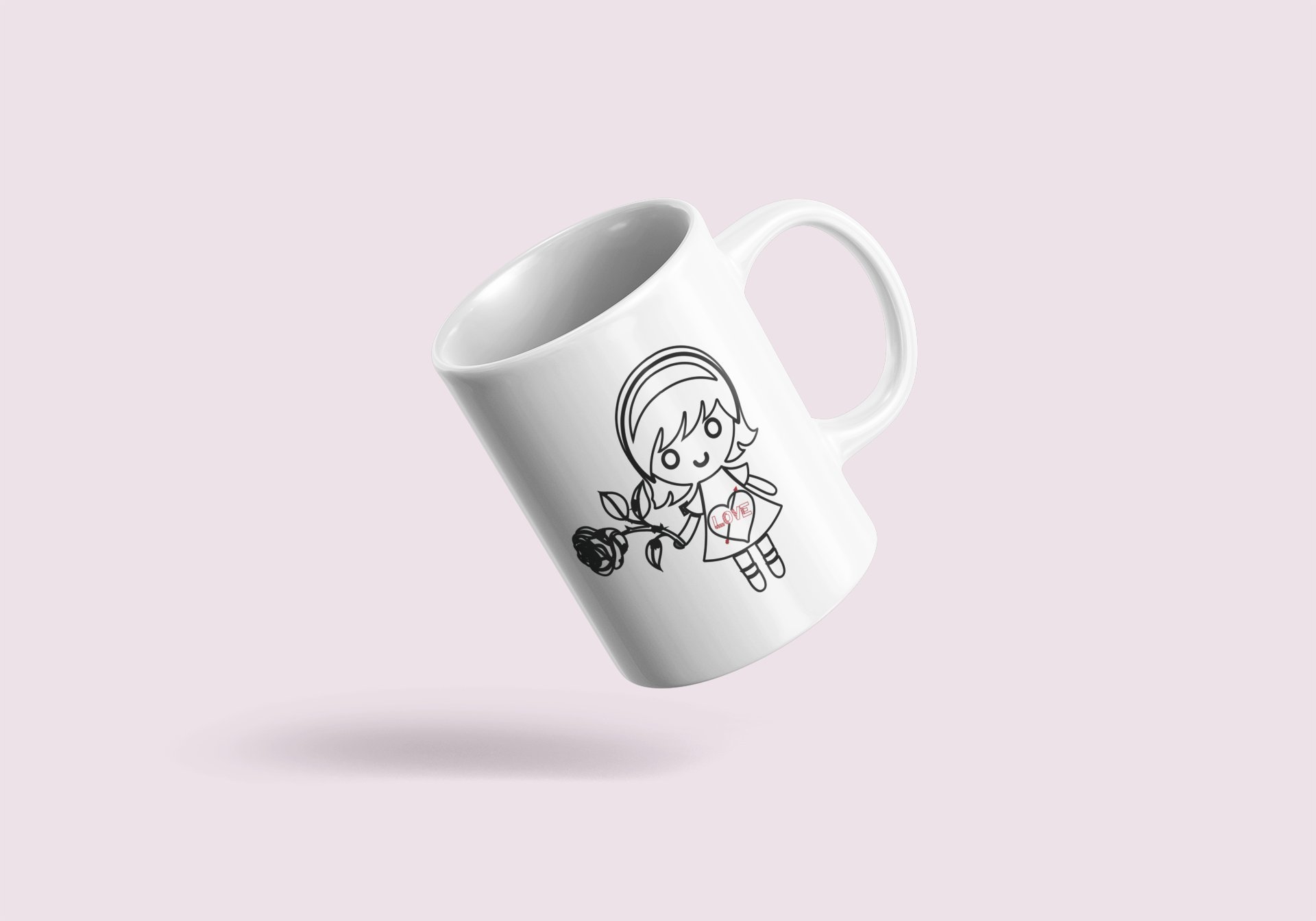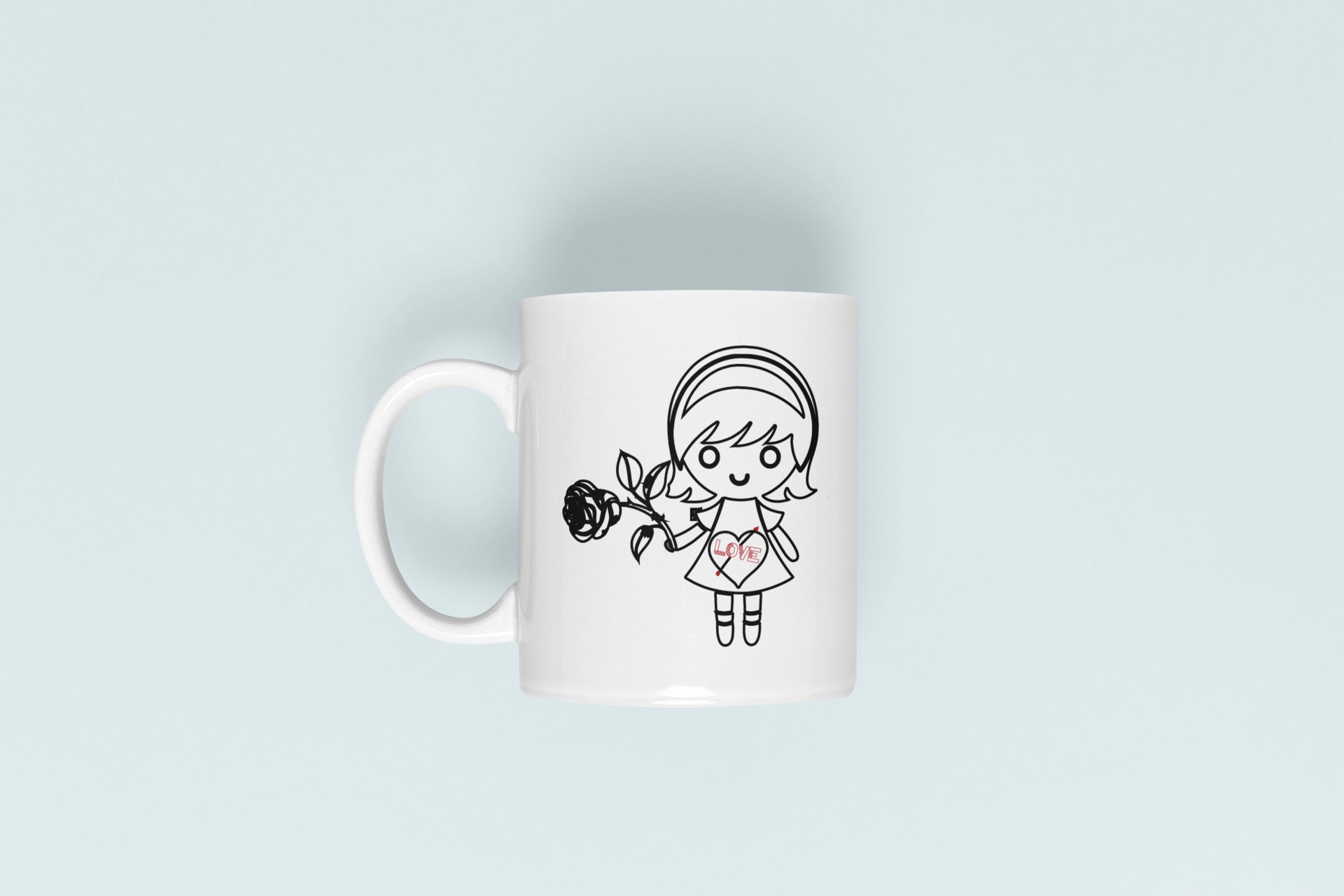 Rose Girl - line art themed printed ceramic white coffee and tea mugs/ cups
