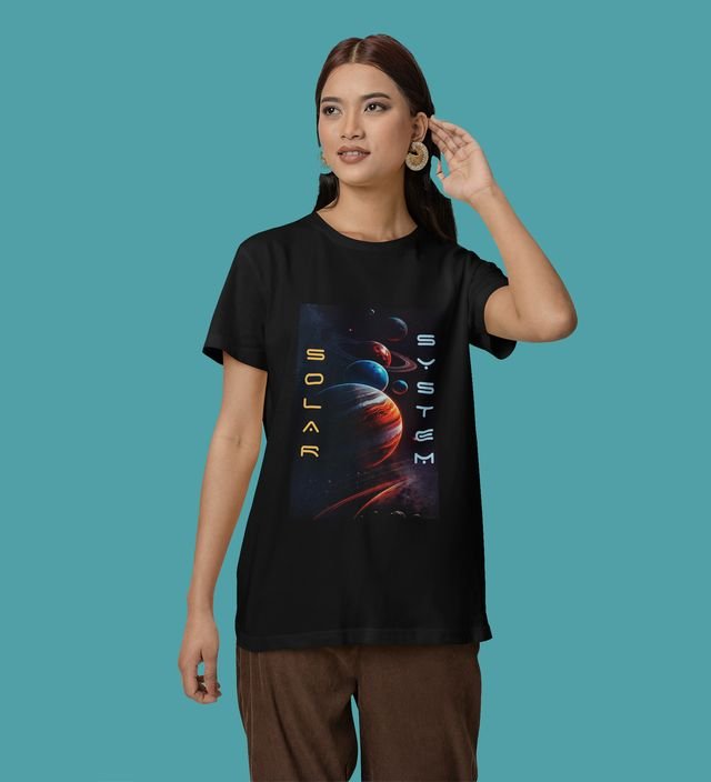 Rotations of Reality: Solar System Graphic Printed Black T-Shirt