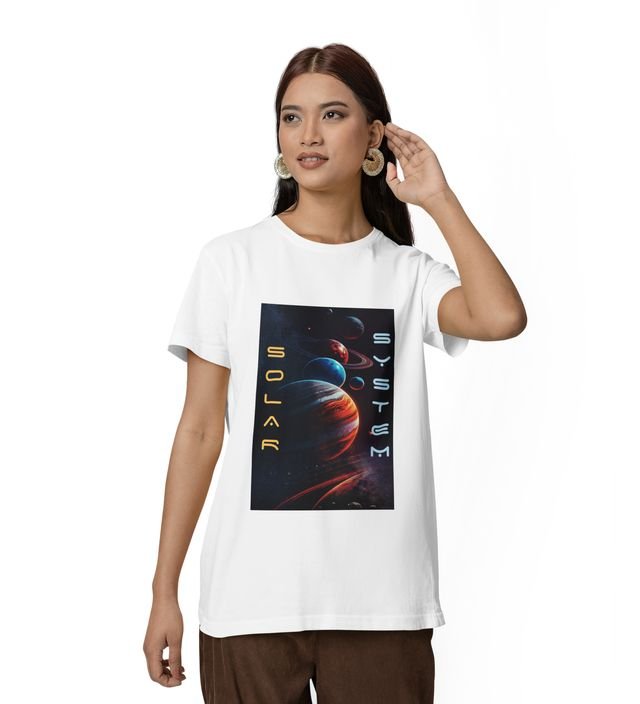 Rotations of Reality: Solar System Graphic Printed White T-Shirt