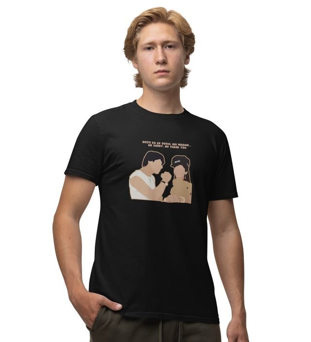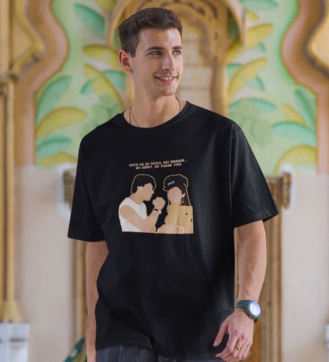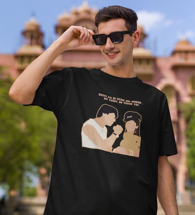 Rule Of Friends Black Round Neck Cotton Half Sleeved Men T Shirt with Printed Graphics
