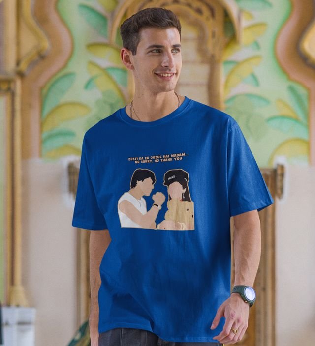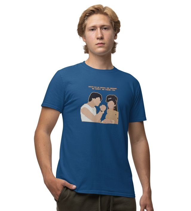 Rule Of Friends Blue Round Neck Cotton Half Sleeved Men T Shirt with Printed Graphics